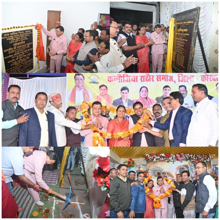 *उद्योग मंत्री लखन लाल देवांगन ने कन्नौजिया राठौर समाज क़े 25 लाख क़े भवन का लोकार्पण और तैलिक विकास समिति क़े 20 लाख क़े भवन की रखी आधारशिला*