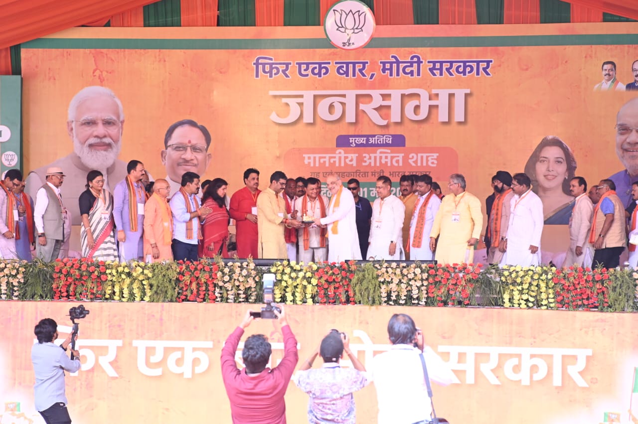 अपने उद्बोधन में केन्द्रीय मंत्री श्री अमित शाह ने कहा की मैं आज चुनाव प्रचार में नही आया हु, मैं तो कोरबा लोकसभा में 4 जून को खिलने वाले कमल फूल की अग्रिम बधाई देने आया हु। सभा के आखिरी मे मंत्री श्री लखन लाल देवांगन, प्रदेश मंत्री विकास महतो, कटघोरा विधायक प्रेमचन्द पटेल ने राम मंदिर भेंट की। श्री अमित शाह ने भेंट को सहर्ष स्वीकार किया ।आज के इस अवसर पर वर्ष 1985 के आईएफएस और रिटायर्ड सीसीएफ श्री राकेश चतुर्वेदी को उद्योग और श्रम मंत्री श्री लखन लाल देवांगन ने भगवा गमछा पहनाकर भाजपा में प्रवेश किया।