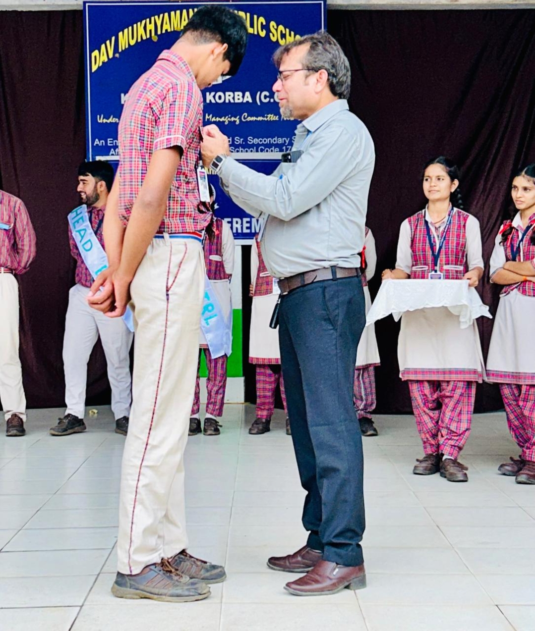 विद्यालय के प्राचार्य श्री मुखर्जी द्वारा विद्यालय के हेड बॉय सुयश कौशिक एवं हेड गर्ल अन्वेषा ठाकुर, सांस्कृतिक प्रतिनिधि, बालक रोहन कुमार बहेरा, बालिका कुमकुम किरन, अनुशासन प्रतिनिधि बालक गोपाल शर्मा, बालिका संस्कृति यादव, सभी हाउस के हाउस कैप्टन तथा सभी कक्षाओं के कक्षा मॉनिटर को बैज प्रदान किया गया।