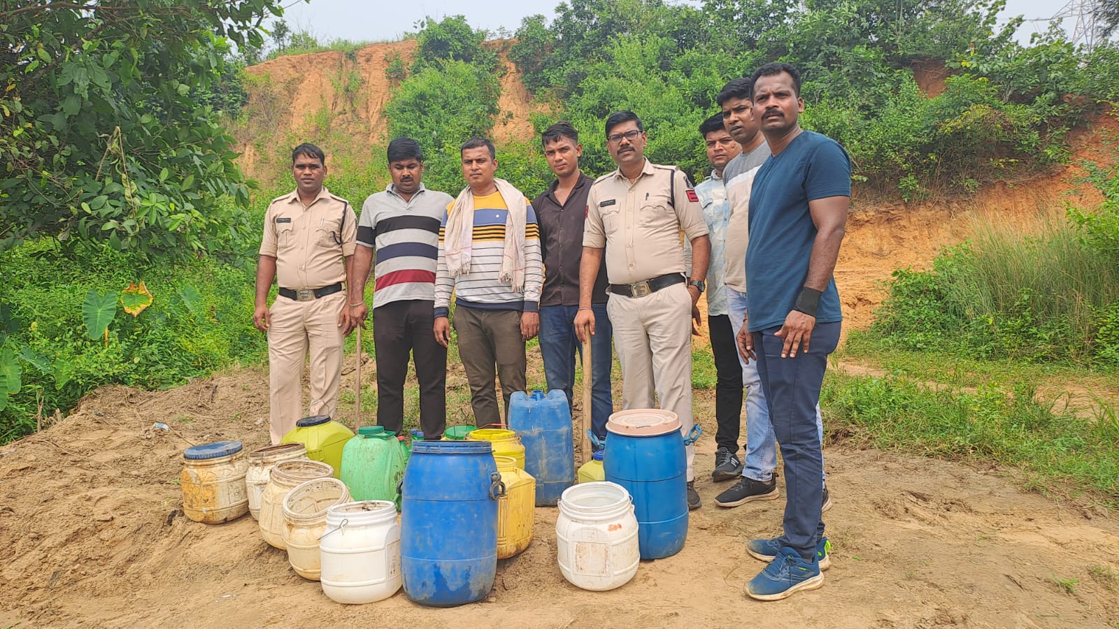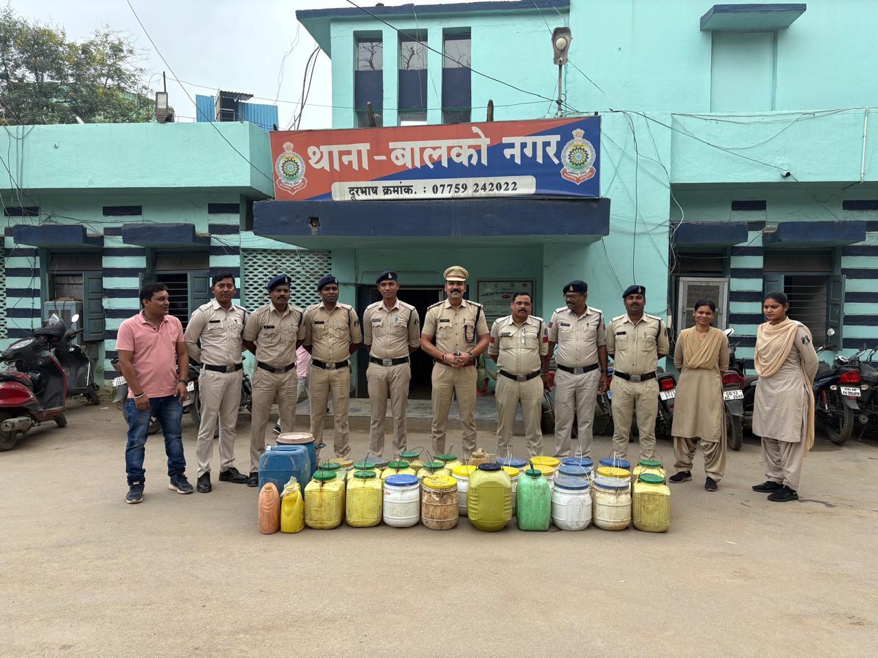 कोरबा/ पुलिस अधीक्षक राजेश कुकरेजा कोरबा के द्वारा जिला में अवैध कारोबार करने वालों पर कार्यवाही करने निर्देशित किया गया है जिसके परिपालन में थाना प्रभारी बालकोनगर निरीक्षक अभिनवकांत के द्वारा थाना बालकोनगर क्षेत्र में अवैध शराब, गांजा बेचने वालों पर कार्यवाही करते हुए लालघाट नदी किनारे भारी मात्रा में शराब बनाने सूचना पर हमराह स्टाफ के साथ जाकर रेड कार्यवाही किया गया जहा पर भारी मात्रा में शराब बनाया जा रहा था मौके पर शराब बनाने हेतु उपयोग में लाने वाले बर्तन पास को नष्ट किया गया एवं 505 लीटर महुआ शराब जप्त कर थाना लाया गया शराब बनाने वाले आरोपी पुलिस को देखकर भाग गये मौके पर जप्त शराब 505 लीटर को थाना लाकर अज्ञात आरोपी के विरूद्ध 34 (2) आबकारी एक्ट के तहत कार्यवाही किया गया है ।