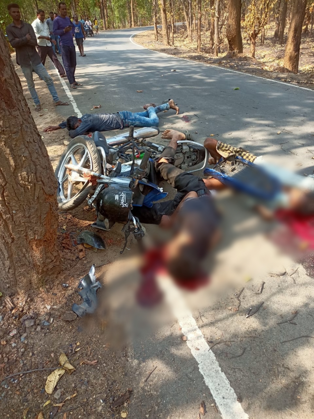 पुटा पाली क्षेत्र में हुई। गांव में रहने वाले नारायण सिंह उम्र 58 वर्ष के घर देवरी में रहने वाला रिश्ते में भतीजा राजा गोंड़ आया था। सोमवार को नारायण सिंह 58 वर्ष, उसका पुत्र राजू सिंह 35 वर्ष और रिश्तेदार राजा गोंड़ बाइक सीजी-10एयू-8568 पर बैठकर अपने घर से गांव के दूसरी छोर पर बनाए गए घर जा रहे थे। बाइक राजा गोंड़ चला रहा था। गांव के करीब बाइक सड़क किनारे पेड़ से टकाई। बाइक पर सवार तीनों युवक सिर के बल पेड़ पर गिरे। सिर में गंभीर चोट लगने से नारायण सिंह और राजा गोंड़ की मौत हो गई जबकि राजू गोंड़ को गंभीर हालत में पाली के सरकारी अस्पताल पहुंचाया गया। उसकी नाजुक स्थिति को देखकर डॉक्टर ने सिम्स बिलासपुर रेफर किया है।