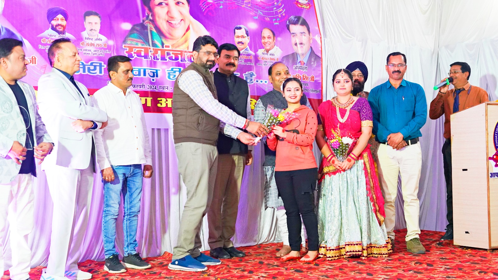 कार्यक्रम के मुख्य अतिथि कोरबा के वरिष्ठ दंत चिकित्सक डॉ. विवेक रंजन महतो एवं कार्यक्रम की अध्यक्षता छत्तीसगढ़ राइज़िंग आर्टिस्ट एसोसिएशन के प्रमुख संरक्षक श्री शशि सिंह ने किया। विशिष्ठ अतिथि के रूप में श्री अशोक अग्रवाल, वायलिन वादक एवं उद्यमी, श्री सोनू भाटिया, जिला संयोजक सांस्कृतिक प्रकोष्ठ भाजपा, श्री संतोष राय, जिला संयोजक आरटीआई प्रकोष्ठ भाजपा, एसोसिएशन के प्रमुख मार्गदर्शक पं. मोरध्वज वैष्णव एवं छत्तीसगढ़ राइज़िंग आर्टिस्ट एसोसिएशन के प्रांतीय अध्यक्ष डॉ. गिरीश केशकर रहे। कार्यक्रम का शुभारंभ मां सरस्वती एवं लता मंगेशकर की तैल्य चित्र पर दीप प्रज्वलन एवं पुष्प अर्पित कर किया गया। मेरी आवाज़ ही पहचान है गर याद रहे… गाने से अपूर्वा सिंह एवं दिनेश सिंह ने कार्यक्रम का आग़ाज़ किया, विशिष्ठ अतिथि सोनू भाटिया, एसोसिएशन के प्रांताध्यक्ष डॉ. गिरीश केशकर, कार्यकारी प्रांताध्यक्ष डॉ. आशा आज़ाद, प्रमुख सलाहकार ओम यादव, प्रांतीय सचिव तरुण वैष्णव, पूजा धिरहे, सपना राजपूत, स्वप्निल शर्मा, लक्ष्मी साहू, महेंद्र चौहान सहित एसोसिएशन के गायक कलाकारों ने सुरीले भूले बिसरे गीतों से कार्यक्रम में शमा बांधा वही पं. मोरध्वज की शिष्या एवं अंतराष्ट्रीय स्तर पर कत्थक नृत्य से विश्व में कोरबा का गौरव बढ़ाने वालीं दीक्षा सिंह एवं निष्ठा अग्रवाल ने कत्थक नृत्य की प्रस्तुति से दर्शकों को मंत्रमुग्ध कर दिया। मुख्य अतिथि डॉ. विवेक रंजन महतो, कार्यक्रम अध्यक्ष श्री शशि सिंह सहित सभी अतिथियों ने अपने उद्बोधन में एसोसिएशन द्वारा किये जा रहे कार्यो की सराहना करते हुए कला के क्षेत्र में कोरबा को आगे बढ़ाने अपना हर संभव सहयोग प्रदान करने की बात कही।