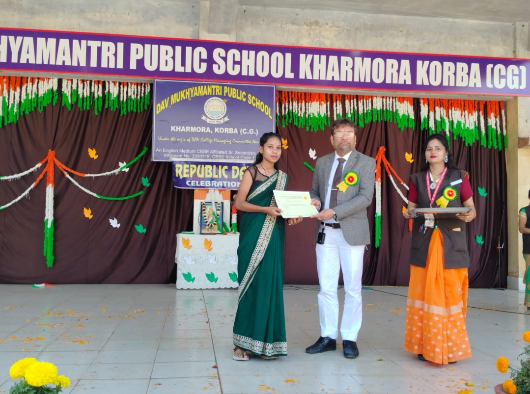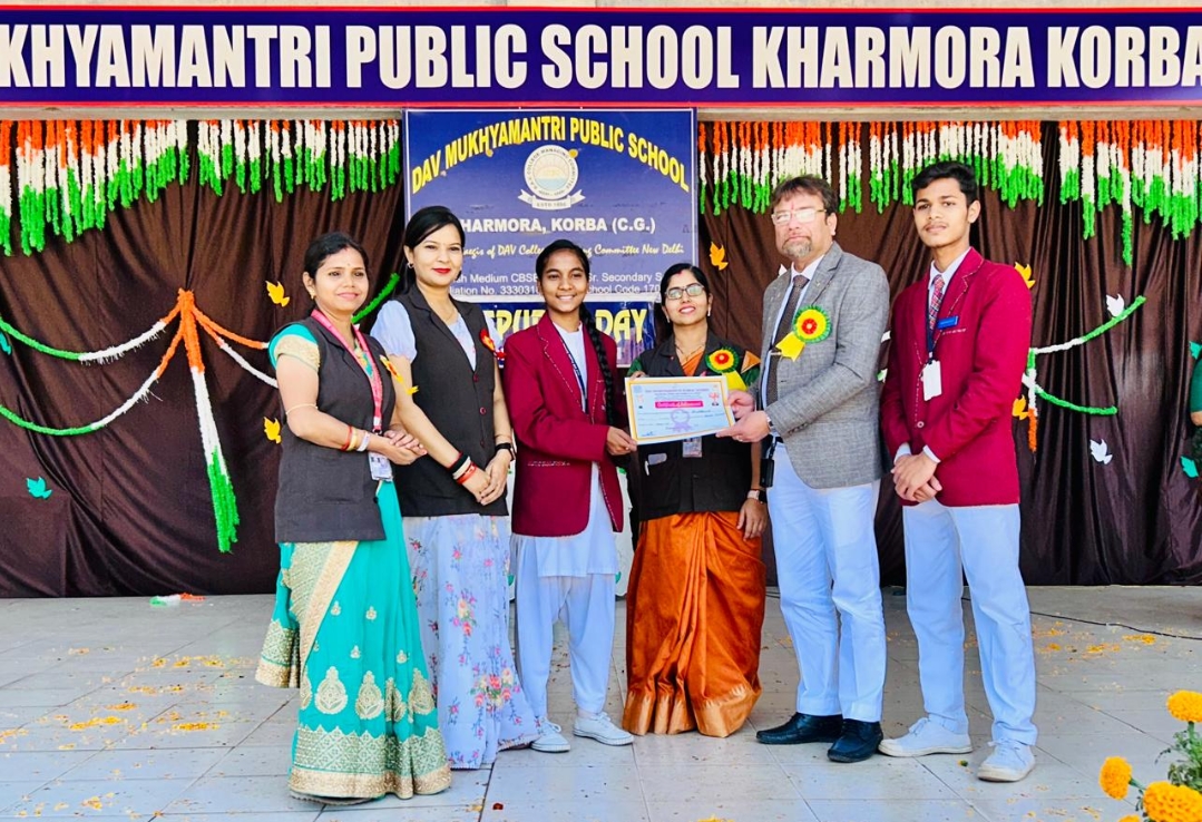 कोरबा/डीएवी मुख्यमंत्री पब्लिक स्कूल खरमोरा में गणतंत्र दिवस बड़े ही हर्षोल्लास से मनाया गया। इस कार्यक्रम का शुभारंभ प्राचार्य श्री हेमंतो मुखर्जी के द्वारा झंडा फहराने तथा भारत माता के चित्र पर माल्यार्पण एवं दीप प्रज्वलन के साथ किया गया। बच्चों ने अनेक देशभक्ति पूर्ण रंगारंग कार्यक्रम प्रस्तुत किये। बच्चों के मार्च-पास्ट तथा परेड ने सभी का मन मोह लिया। सभी लोगों ने बच्चों के कार्यक्रम की भूरि भूरि प्रशंसा की तथा तालियों के साथ उनका उत्साहवर्धन किया। सांस्कृतिक कार्यक्रम समाप्त होने के पश्चात विभिन्न प्रतियोगिताओं में भाग लेने वाले छात्रों को प्रमाण पत्र एवं मेडल प्रदान किए गए। कक्षा एलकेजी से दूसरी कक्षा तक के विद्यार्थियों को उनकी उपलब्धि के लिए उनके माता-पिता के साथ प्रमाण पत्र तथा मेडल प्राचार्य के द्वारा प्रदान किया गया। अंत में प्राचार्य मुखर्जी ने अपने वक्तव्य में कहा कि 76वें गणतंत्र दिवस की थीम स्वर्णिम भारत की विरासत और विकास है। इस दिन को राष्ट्रीय त्योहार के रूप में मनाया जाता है। इसी दिन भारत के संविधान को अपनाया गया था। भारत में गणतंत्र दिवस भारत के संविधान को अपनाने की याद में मनाया जाता है। इस दिन भारतीय नागरिकों के चेहरे पर भारत माता के लिए गर्व प्रसन्नता और प्रेम देखा जा सकता है। अंत में प्राचार्य मुखर्जी ने अभिभावकों का विद्यालय के समारोह में शामिल होने के लिए आभार व्यक्त किया तथा सभी को गणतंत्र दिवस की शुभकामनाएं दी और छात्रों के उज्जवल भविष्य की कामना की। सभी को मिष्ठान्न वितरित कर कार्यक्रम का समापन किया गया। इस कार्यक्रम को सफल बनाने में विद्यालय के सभी शिक्षकों की महत्वपूर्ण भूमिका रही।