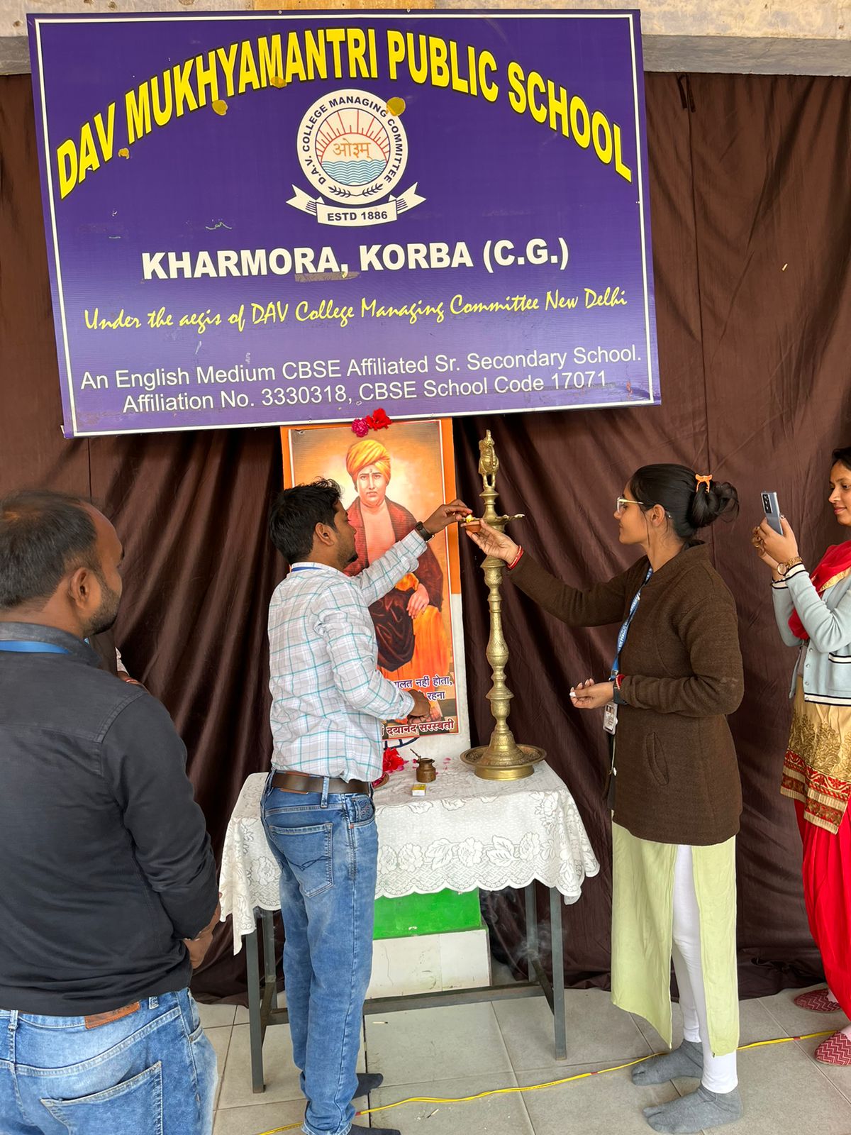 डी. ए. वी मुख्यमंत्री पब्लिक स्कूल खरमोरा कोरबा में 12 फरवरी को आर्य समाज के प्रवर्तक और प्रखर सुधारवादी संन्यासी महर्षि स्वामी दयानंद सरस्वती जी की जयंती मनाई गई। विद्यालय के प्राचार्य महोदय श्री हेमंतो मुखर्जी और विद्यालय के स्टाफ ने स्वामी दयानंद सरस्वती जी के छायाचित्र में पुष्प व मल्यार्पण कर तथा द्वीप प्रज्वलित कर उन्हे नमन किया । इस अवसर पर कक्षा सातवीं व आठवीं के विद्यार्थियों ने डी.ए.वी के संस्थापक कहे जाने वाले स्वामी दयानंद सरस्वती जी के जीवन पर सुन्दर नाटक की प्रस्तुति दी। कक्षा ग्यारहवीं की छात्रा रश्मि शर्मा ने स्वामी दयानंद सरस्वती जी की जीवनी और उनके द्वारा दिए गए शिक्षाओं तथा धार्मिक – सामाजिक सुधारों पर प्रकाश डालते हुए अपने विचार प्रस्तुत किए। अंत में विद्यालय के प्राचार्य श्री हेमंतो मुखर्जी ने कहा की आर्य समाज के प्रवर्तक और प्रखर सुधारवादी संन्यासी महर्षि स्वामी दयानंद सरस्वती की जयंती पर मैं उन्हें नमन करता हूं। आगे प्राचार्य कहते है कि “दुनिया को अपना सर्वश्रेष्ठ दिजिए और वह आपके पास सर्वश्रेष्ठ लौटकर आएगा”आधुनिक भारत के महान चिंतक, सामाजिक कुरीतियों और अंधविश्वास के खिलाफ, नवजागरण, महिला सशक्तिकरण करने वाले आर्य समाज के संस्थापक स्वामी दयानन्द सरस्वती की जयंती पर सादर नमन है। स्वामी दयानंद सरस्वती आर्य समाज के संस्थापक, आधुनिक भारत के महान चिंतक, समाज-सुधारक और देशभक्त थे, स्वामी दयानंद सरस्वती ने बाल विवाह, सती प्रथा जैसी कुरीतियों को दूर करने में अपना खास योगदान दिया था, उन्होंने वेदों को सर्वोच्च माना और वेदों का प्रमाण देते हुए हिंदू समाज में फैली कुरीतियों का विरोध किया था। महान समाज-सुधारक स्वामी का देहांत 30 अक्टूबर 1883 को दीपावली के दिन हुआ था। धार्मिक और सामाजिक सुधार के साथ लोगों के अंदर स्वदेशी की भावना भरने वाले दयानंद सरस्वती जी का भारतीय समाज में योगदान अभूतपूर्व है। प्राचार्य मुखर्जी ने यह भी जानकारी दी कि यह महर्षि दयानंद का 200वीं जयंती है जिसको बृहद रूप से गुजरात के टंकारा में माननीय प्रधानमंत्री श्री नरेंद्र मोदी जी के मुख्य आतिथ्य व कुशल नेतृत्व में आयोजित किया गया है।