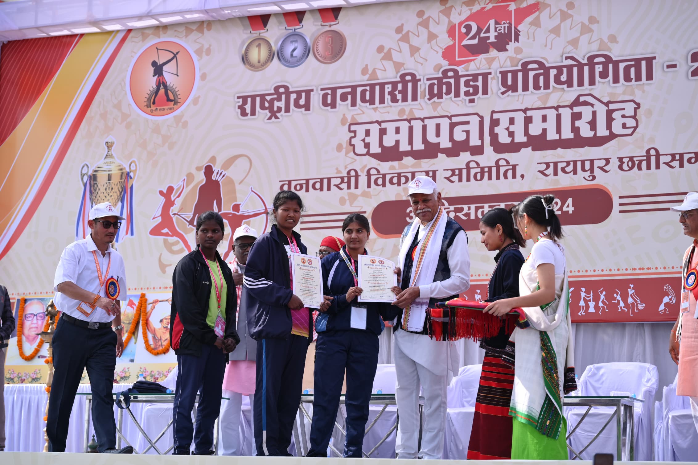 रायपुर 31 दिसम्बर 2024/ 24वीं राष्ट्रीय वनवासी क्रीड़ा प्रतियोगिता में हुए तीरंदाज़ी के मुकाबलों में पूर्वी उत्तर प्रदेश के तीरंदाज़ों का जलवा रहा। कर्नाटक की बालिका तीरंदाजों ने उत्कृष्ट खेल का प्रदर्शन किया। इन खिलाड़ियों ने ट्रॉफी और मेडलों के साथ अपनी खेल भावना और व्यवहार से आयोजकों सहित साथी खिलाड़ियों का दिल भी जीत लिया। पूर्वी उत्तरप्रदेश के तीरंदाज़ों ने कुल बारह में से चार पदक जीते हालांकि पूर्वी उत्तरप्रदेश के तीरंदाज किसी भी वर्ग में स्वर्ण पदक नहीं पा सके परंतु जूनियर बालक और सब जूनियर बालक वर्ग में इन खिलाड़ियों ने सिल्वर और ब्रांज मेडल प्राप्त किया। तीरंदाजी की जूनियर बालक वर्ग की प्रतिस्पर्धा में राजस्थान के हिमेश बरांडा ने 643 अंक प्राप्त कर स्वर्ण पदक जीता। पूर्वी उत्तर प्रदेश के आदित्य सिंह ने 637 अंक लेकर रजत और हीरा सिंह ने 626 अंक प्राप्त कर कांस्य पदक प्राप्त किया।