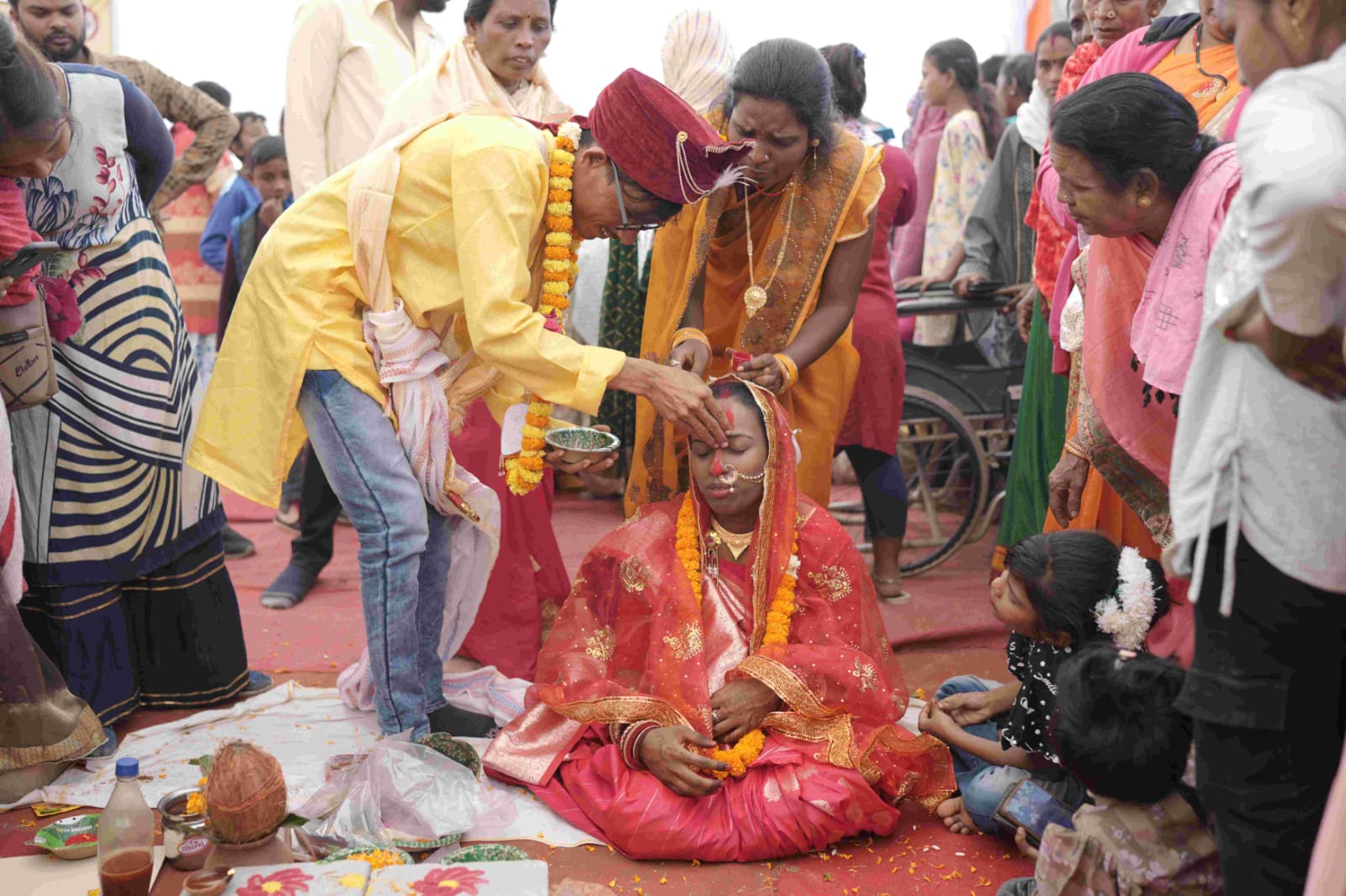 कोरबा के बालको की रहने वाली प्रतिभा बचपन से ही दिव्यांग है। दोनों पैर से लाचार प्रतिभा को लगता था कि पता नहीं उसके साथ कोई शादी करेगा भी या नहीं! शादी की यह ख्वाहिश एक दिन हकीकत में बदल गई जब चाम्पा निवासी अश्विनी साहू ने प्रतिभा का हाथ जीवन भर थामने का निर्णय लिया। दोनों के घर वालों की सहमति बनी और आर्थिक स्थिति ठीक नहीं होने पर दोनों का विवाह मुख्यमंत्री कन्या विवाह योजना अंतर्गत आज सीएसईबी पूर्व खेल मैदान में आयोजित सामूहिक विवाह समारोह में सम्पन्न हुआ। व्हीलचेयर के सहारे प्रतिभा ने सात फेरे लिए और पति अश्विनी ने उनके माथे पर सिंदूर भरा। दोनों परिवार की सहमति और दूल्हे के रजामंदी के साथ विवाह हुआ। इस दौरान महिला एवं बाल विकास विभाग के अधिकारियों ने विवाह की सम्पूर्ण औपचारिकता निभाई। परिजनों ने मुख्यमंत्री कन्या विवाह योजना से मिले सहयोग की प्रशंसा की और इसे गरीब परिवारों के लिए वरदान बताते हुए कहा कि सामूहिक विवाह का आयोजन होते रहना चाहिए ताकि गरीब परिवारो को आर्थिक बोझ न सहना पड़े। मुख्यमंत्री श्री विष्णुदेव साय ने भी आज 102 जोड़ो को आशीर्वाद प्रदान कर नव दाम्पत्य जीवन में प्रवेश पर बधाई दी।