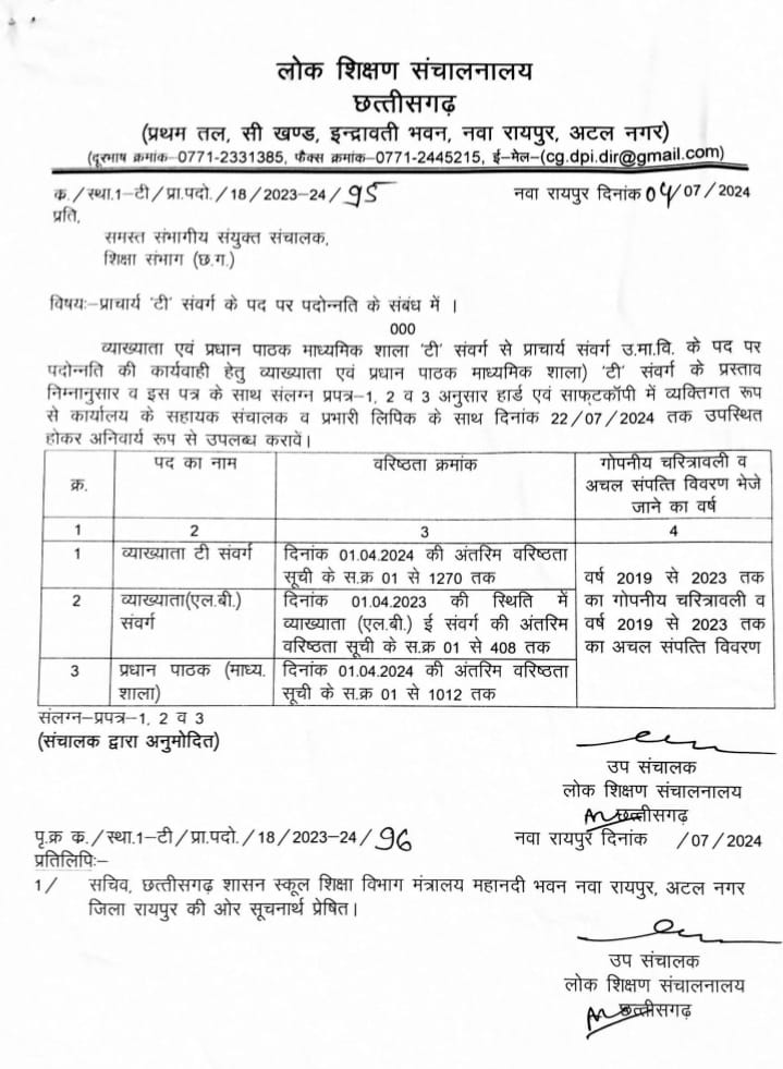कोरबा/प्रदेश के हाई और हायर सेकेंडरी स्कूलों में प्राचार्य के हजारों पद रिक्त हैं। इन विद्यालयों की व्यवस्था प्रभारी प्राचार्यो के भरोसे चल रही है। अब शासन ने प्राचार्यो के इन रिक्त पदों पर पदोन्नति की प्रक्रिया तेज कर दी है। इसी तारतम्य में 4 जुलाई को लोक शिक्षण संचालनालय ने सभी संभागीय संयुक्त संचालको को पत्र जारी कर ई एवं टी संवर्ग के व्याख्याता, व्याख्याता एलबी एवं प्रधान पाठक माध्यमिक शाला के गोपनीय चरित्रावली मंगाया गया है। इसमें जो टी एलबी संवर्ग की संख्या दी गयी है इसको लेकर टी एलबी संवर्ग के व्याख्याताओं में भारी नाराजगी है। इस संबंध में छत्तीसगढ़ शिक्षक वेलफेयर एसोसिएशन के प्रांताध्यक्ष डॉ गिरीश केशकर ने बताया कि पदोन्नति हेतु व्याख्याता टीएलबी की जो संख्या दी गयी है गोपनीय चरित्रावली मंगाने के लिए वह संख्या राजपत्र में जारी भर्ती तथा पदोन्नति नियम 2019 के नियम के विपरीत है। इस नियम के अनुसार प्राचार्य पद पर पदोन्नति कुल रिक्त पद का 10 प्रतिशत विभागीय सीधी भर्ती के से 25 प्रतिशत पद माध्यमिक शाला के प्रधान पाठक से, बचे 65 प्रतिशत व्याख्याताओं से और इस 65 प्रतिशत में से 70 प्रतिशत नियमित व्याख्याता से एवं 30 प्रतिशत व्याख्याता एलबी से किया जाना है। परंतु जारी पत्र में व्याख्याता टीएलबी की जो संख्या 408 दिया गया है वो किसी नियम से सही नहीं है। जो आंकड़े दिए गए हैं जारी पत्र में उसके आधार पर व्याख्याता टीएलबी की संख्या 605 होता है। इस प्रकार से जारी पत्र में व्याख्याता टी एलबी के 197 पद को कम करके बताया गया है। वहीं माध्यमिक शाला के प्रधान पाठकों की संख्या 672 होना था उसे 1012 दिया गया है।