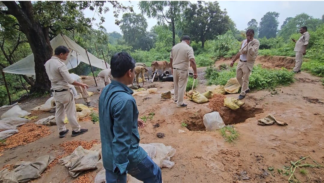 एसपी यू उदय किरण के मार्गदर्शन में उरगा थाना प्रभारी युवराज तिवारी और टीम ने बुधवार को यह कार्रवाई चीतापाली गाव में की। पुलिस को जानकारी मिली थी कि नाला के किनारे पिछले कुछ दिनों से अवैध रूप से महुआ की शराब बनाने का काम कुछ लोगों के द्वारा किया जा रहा था इसी गांव के रहने वाले अमृत और सुखलाल की इसमें मुख्य भूमिका थी, भाग निकले। उनके विरुद्ध आबकारी एक्ट की धाराओं के अंतर्गत पुलिस ने अपराध रजिस्टर्ड किया है और संभावित ठिकानों पर तलाश की जा रही है । थाना प्रभारी युवराज तिवारी ने बताया कि पुलिस के द्वारा जिस ठिकाने पर रेड कार्रवाई की गई वहां से 300 लीटर महुआ शराब के अलावा हजारों की कीमत का महुआ लहान भी मिला है। अब शराब बनाने वाले लोगों ने आगामी कार्य योजना के लिए इतनी बड़ी मात्रा में इसका स्टॉक कर रखा हुआ था। विभिन्न क्षेत्रों के भ्रमण के दौरान पुलिस के पास इनपुट आ रहा था कि कुछ इलाकों में अवांछित हरकतें चल रही हैं और इनका बुरा असर आसपास की व्यवस्था पर पड़ रहा है । ऐसी सूचनाओं में अवैध शराब का मुद्दा भी शामिल था । सूचना की पुष्टि करने के साथ इस गांव में रेड करने से पहले उच्च अधिकारियों को अवगत कराया गया और उनसे निर्देशन प्राप्त करते हुए कार्रवाई को अंजाम दिया गया। चीता पाली गांव में अवैध शराब बनाने के लिए जो हाथ भट्टी बनाई गई थी उसे फौरी तौर पर नष्ट कर दिया गया है।