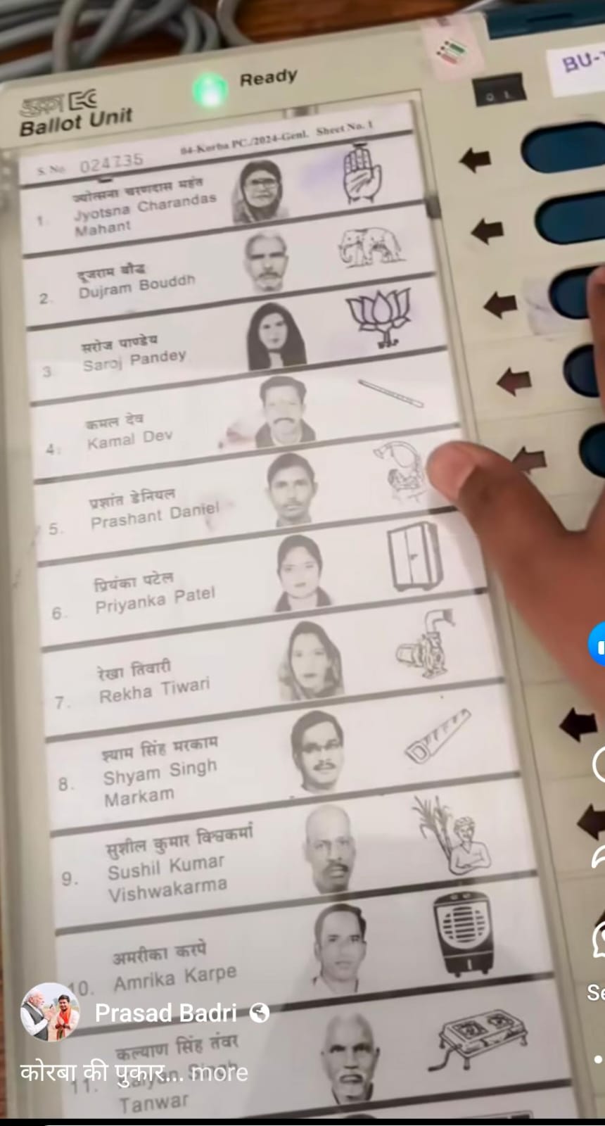 सोशल मीडिया पर प्रसारित वीडियो में युवा नेता स्वयं नज़र नहीं आ रहे, बल्कि वीडियो मतदान करते समय ईवीएम मशीन का है जिसमें भाजपा प्रत्याशी सरोज पाण्डेय को वोट दिया गया है। इस वीडियो के साथ यह दावा किया गया है कि यह बद्री अग्रवाल द्वारा मतदान का वीडियो है, उक्त वीडियो को भाजपा नेता ने फेसबुक, इंस्टाग्राम में पोस्ट किया है |