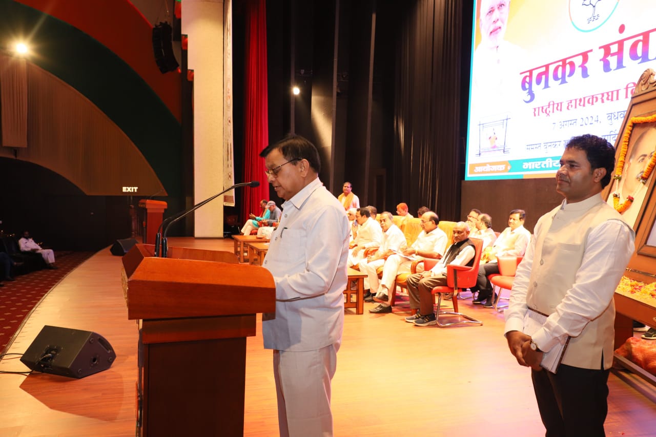 रायपुर। आज भाजपा प्रदेश कार्यालय कुशाभाऊ ठाकरे परिसर में राष्ट्रीय हथकरघा दिवस पर आयोजित बुनकर संवाद कार्यक्रम में प्रदेश के उप मुख्यमंत्री श्री अरूण साव, प्रदेश महामंत्री संगठन श्री पवन साय , वाणिज्य उद्योग और श्रम मंत्री श्री लखन लाल देवांगन बतौर मुख् अतिथि के रुप में शामिल हुए।