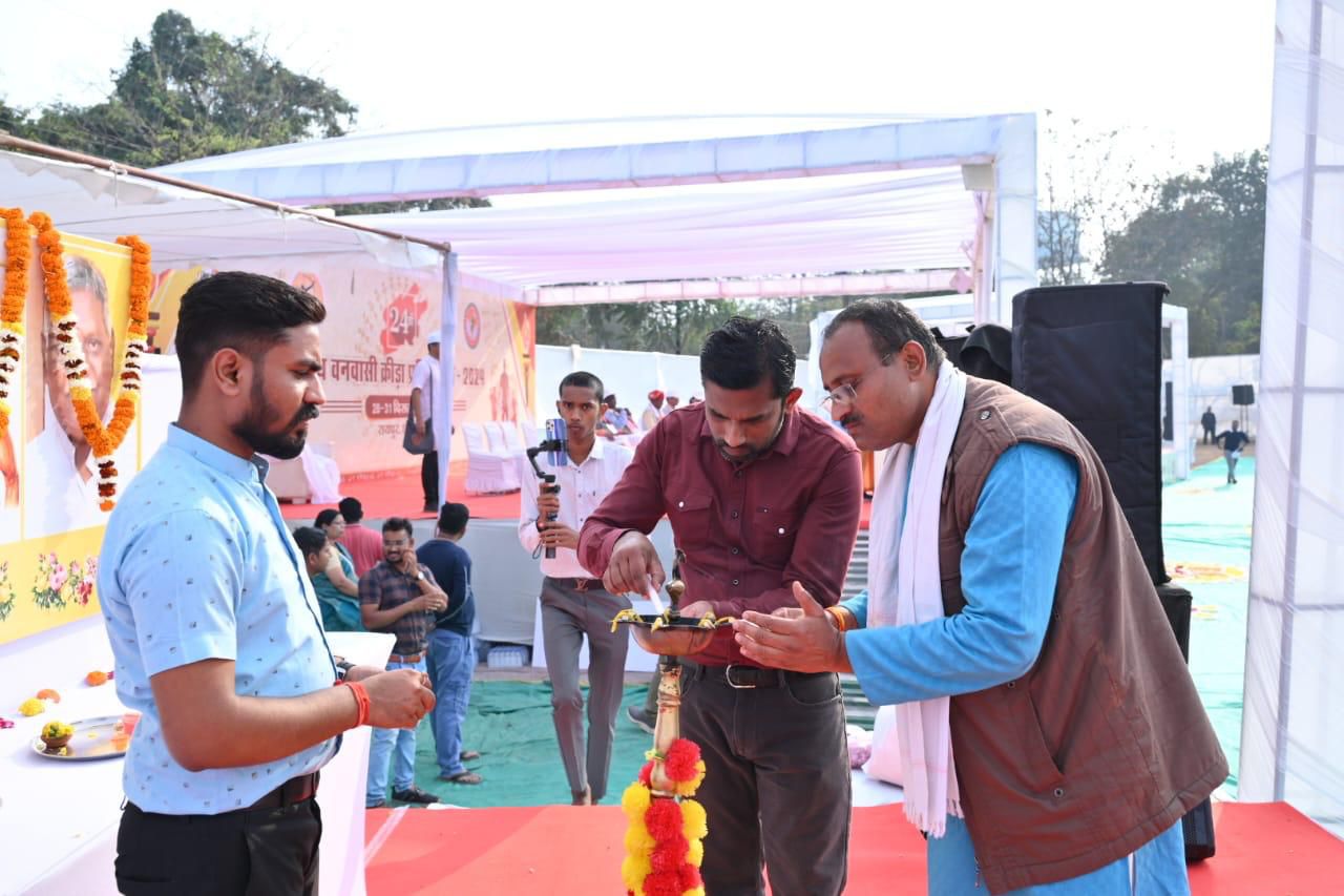 प्रतियोगिता में उपस्थित खिलाड़ियों का उत्साह वर्धन करते हुए अखिल भारतीय वनवासी कल्याण आश्रम के राष्ट्रीय अध्यक्ष श्री सत्येंद्र सिंह ने कहा कि यह खेल आयोजन जनजातीय खिलाड़ियों की प्रतिभा को विश्व स्तर पर स्थापित करने के उद्देश्य से किया जा रहा है उन्होंने खेल से होने वाले फायदों को बताते हुए कहा कि खेल नियमों से खेले जाते है और खिलाड़ियों को अनुशासित तथा शिष्टाचारी नागरिक तैयार करने में मदद करते है उन्होंने कहा जिसमें खेल की भावना होती हैं उसमें जीवन के संघर्षों से लड़ने का साहस स्वतः ही आ जाता है खेल मानसिक, बौद्धिक और सामाजिक दृष्टि से हमें मजबूत बनाते हैं। खेल के माध्यम से हम देश के आदर्श नागरिक बन कर राष्ट्र विकास में अपना यथोचित योगदान दे सकते है।श्री सिंह ने 24 वीं राष्ट्रीय वनवासी क्रीड़ा स्पर्धा की शुरुआत की घोषणा की और खिलाड़ियों को खेल भावना से खेलने के लिए शपथ भी दिलाई ।
