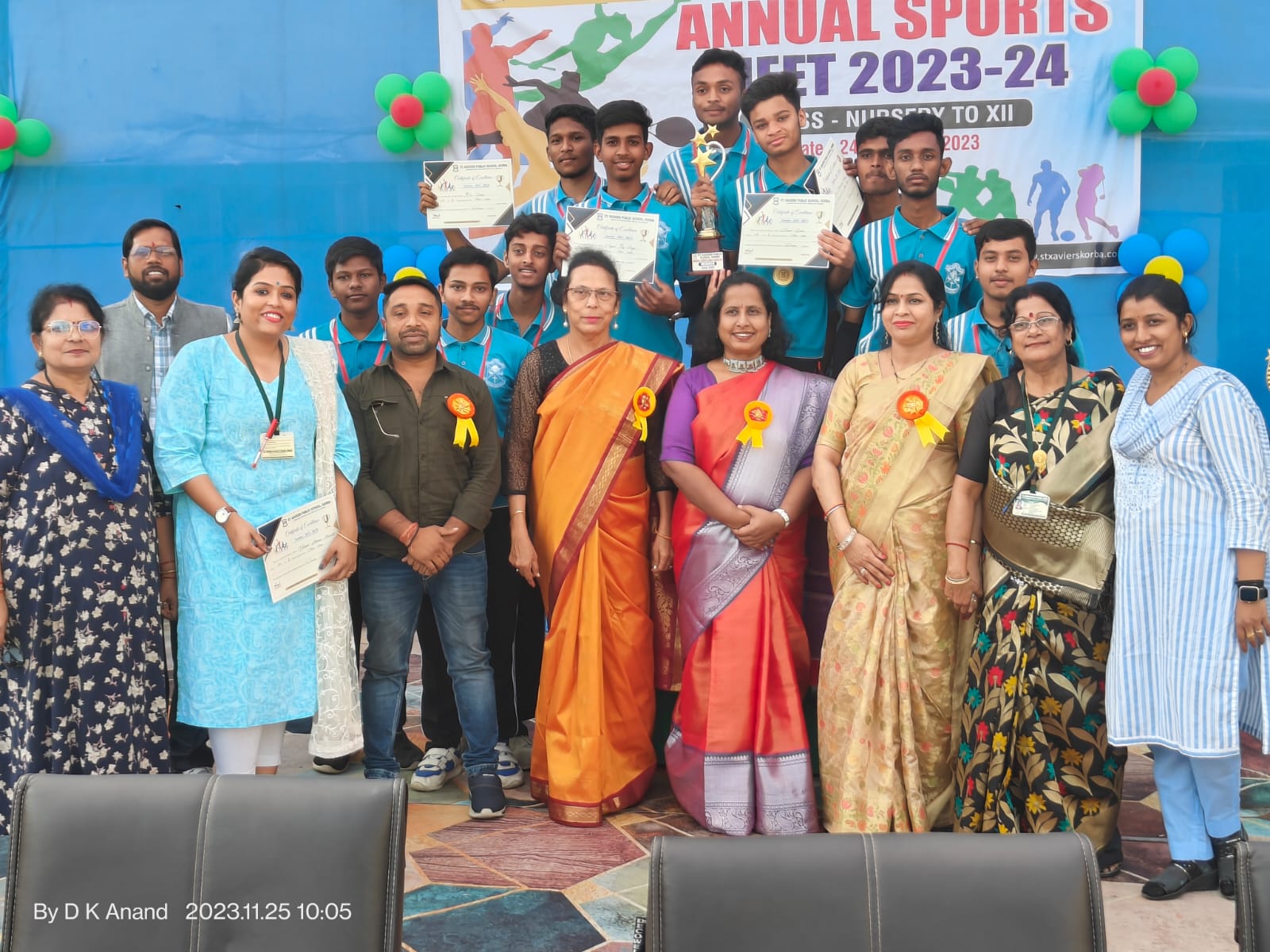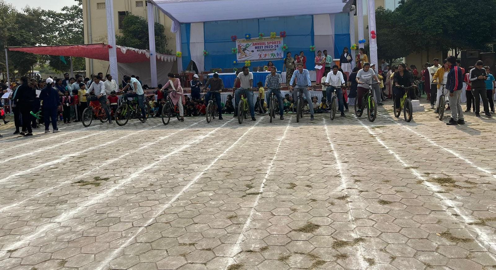 कोरबा.आज दिनांक 25/11/2023 दिन शनिवार को कोरबा के प्रतिष्ठित सेंट ज़ेवियर्स पब्लिक स्कूल में चल रहे दो दिवसीय खेल-कूल प्रतियोगिता अत्यन्त उत्साह पूर्ण तरीके से आरम्भ हुआ। जहाँ उपस्थित मुख्य अतिथि माननीय श्री भूषण एक्का , सिटी पुलिस अधीक्षक कोरबा एवं श्रीमती सान्द्रा पॉल, प्राचार्या इम्प्रेसीव मोंटेसरी स्कूल कोरबा, विशिष्ठ अतिथि माननीय श्री मृत्युंजय पाण्डेय , थाना इंचार्ज (T.I.) सिविल लाईन थाना रामपुर कोरबा एवं श्रीमती गीता गुप्ता , प्राचार्या रिच लुक प्रोग्रेसिव स्कूल कोरबा , वाइल्डलाइफ रेस्क्यू टीम अध्यक्ष जितेन्द्र सारथी विद्यालय के चेयरमैन श्री प्रमोद झा, प्राचार्या माननीया लता नारायण पाटिल, प्रबंधक माननीय डॉ. डी.के आनन्द के द्वारा संगीतमय वेला में माँ शारदा के समक्ष दीप प्रज्ज्वालन व मंगल गायन के साथ द्वितीय दिवसीय वार्षिक खेल-कूद प्रतियोगिता का शुभारम्भ किया गया। अगले कम में मंचीय कार्यकम के दौरान छात्र-छात्राओं के द्वारा अत्यन्त रमणीय व मनोहारी नृत्य की प्रस्तुती की गई। नन्हे छात्र-छात्राओं के इस प्रस्तुती से विद्यालय परीसर गूंज उठा। तत्पश्चात स्पर्धीय कार्यकमों में आज बच्यों के साथ उनके अभिभावको ने बढ़-चढ़ कर हिस्सा लिया और विभिन्न स्पर्धाओं का आनन्द उठाया। कक्षा नर्सरी से तीसरी कक्षा तक के अभिभावकों के लिए 100 मी. दौड, थी लेग रेस, टाईग द टाई, बलून रेस म्यूजिकल चेयर, रीले रेस बलून बेलेंसिंग, कलेक्ट कोन्स, सैक रेस, बैंग टू, बैंक बलून, स्लो साईकलिंग रेस आदि खेल आयोजित किये गये। जहाँ प्रसिद्ध सम्बलपुरी छत्तीसगढ़ी गीत साईकिल से आया सनम के घुन के साथ स्लोसाईकलिंग रेस प्रतियोगिता में पालकों का उत्साह देखते ही बनता था। विद्यालय परिसर में उपस्थित सभी के द्वारा तालियों की गडगडाहट के साथ प्रतिभागी अभिभावकों का उत्साह वर्धन किया गया। एक तरफ जहाँ अभिभावकों की प्रतियोगिता आयोजित हुई वहीं नर्सरी से बारहवी तक के छात्र-छात्राओं के लिए विभिन्न खेल जैसे कबड्डी, लम्बी कूद हर्डल रेस, स्पून-मार्बल रेस, गोला फेंक, जिग-जैग रेस, इत्यादि खेल प्रतियोगिताएँ आयोजित की गयी। इसके उपरान्त उपस्थित प्रतिभागी अभिभावकों में विजेताओं को सम्मानित किया गया। साथ ही छात्र-छात्राओं हेतु आयोजित प्रतियोगिता में विजेताओं को प्रमाण पत्र, पदक एवं प्रशस्ति चिन्ह प्रदान कर प्रोत्साहित किया गया तथा अन्य प्रतिभागी छात्र-छात्राओं को खेल भावना से खेलने की सीख दी गई। अन्त में प्राचार्या श्रीमती लता नारायण पाटिल द्वारा शुभ आशीर्वचनों के साथ उज्जवल साथ जीवन की कामना की गई। साथ ही राष्ट्रगान गूंज के साथ दो दिवसीय वार्षिक खेल प्रतियोगिता का हर्षपूर्ण समापन हुआ।