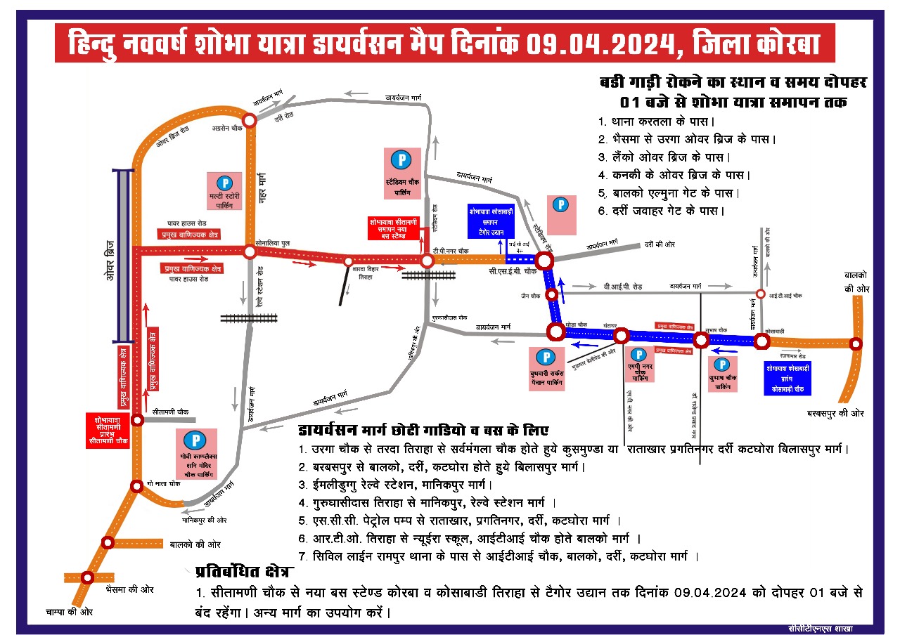 दिनांक 09.04.2024 को शहर में हिन्दू नव वर्ष के मौके पर दो अलग-अलग रैलियों का आयोजन किया गया है जिसमें बड़ी संख्या में दर्शकों एवं श्रद्धालुओं की उपस्थिति रहती है।दोनो शोभायात्राओं को दृष्टिगत रखते हुए पुलिस एवं जिला प्रशासन द्वारा सुरक्षा व्यवस्था के व्यापक इंतजाम किए गये है। शोभायात्रा को हर्षोल्लास एवं शांतिपूर्ण ढंग से सम्पन्न कराने के उद्देष्य से पूरे शहर विशेषकर शोभायात्रा के मार्गो पर सीसीटीव्ही कैमरों एवं वीडियोग्राफी के माध्यम से रैली की आड़ में आसामाजिक तत्वों, जेब कतरों तथा शरीर से जेवर चोरी/ छिनने वालों की निगरानी रखी जाएगी।बदमाशो पर निगाह रखने के लिए शोभायात्रा संचालन समितियों द्वारा अपने वालेंटियर्स के माध्यम से तथा पुलिस द्वारा ऐसे बदमाशो को पहचानने वाले स्पाटर्स लगाकर असामाजिक तत्वों, चोरों, जेबकतरों एवं बदमाशो की पहचान एवं कार्यवाही की जावेगी। पुलिस के द्वारा मैप जारी कर परिवर्तित मार्ग और पार्किंग स्थल की जानकारी दी गई है।