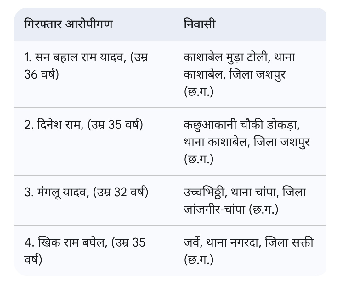 इस सराहनीय कार्यवाही में थाना प्रभारी उरगा उप निरीक्षक राजेश तिवारी के नेतृत्व में प्र.आर. 387 रामु कूर्मी, आर. 91 रामेन्द्र वर्मन, आर. 620 कमल कंवर एवं अन्य स्टाफ का महत्वपूर्ण योगदान रहा।