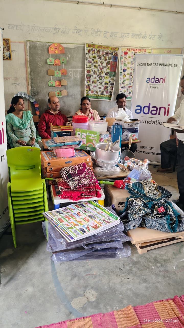 कोरबा, 14 दिसंबर 2025: जिले के बारपाली तहसील अंतर्गत कोरबा पावर लिमिटेड (केपीएल), पताड़ी ने अपनी सामाजिक उत्तरदायित्व पहल के तहत आंगनवाड़ी केंद्रों को सशक्त बनाने की दिशा में महत्वपूर्ण कदम उठाया गया। इस पहल के तहत अदाणी फाउंडेशन के माध्यम से आसपास की पाँच ग्राम पंचायतों के आठ गांवों में स्थित कुल 18 आंगनवाड़ी केंद्रों में रसोई के बर्तन, खेल कूद का सामान, कुर्सीयाँ, टेबल, अलमीरा, गद्दे इत्यादि जैसी आवश्यक सामग्रियों का वितरण किया गया।