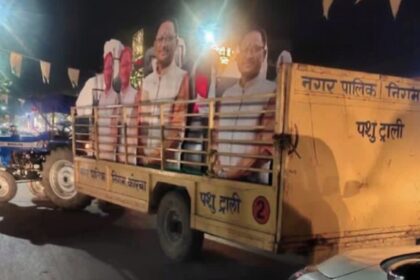 *कोरबा: पशु ट्राली में ढोए गए नेताओं के कट आउट, निगम अधिकारियों पर गिरी गाज!*