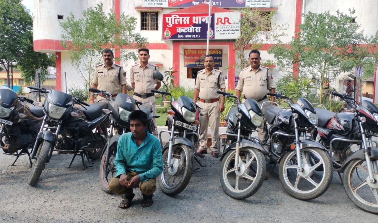 शिवरीनारायण जिला जांजगीर क्षेत्र के मोटर सायकल चोर को गिरफतार कर कटघोरा पुलिस ने भेजा जेल
