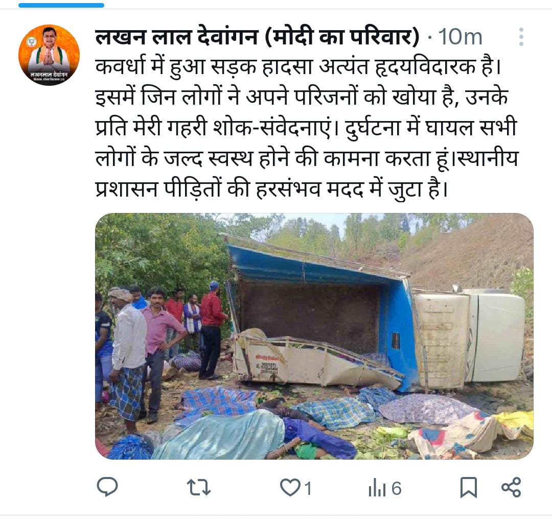 उद्योग मंत्री श्री लखन लाल देवांगन ने कवर्धा हादसे पर जताया शोक