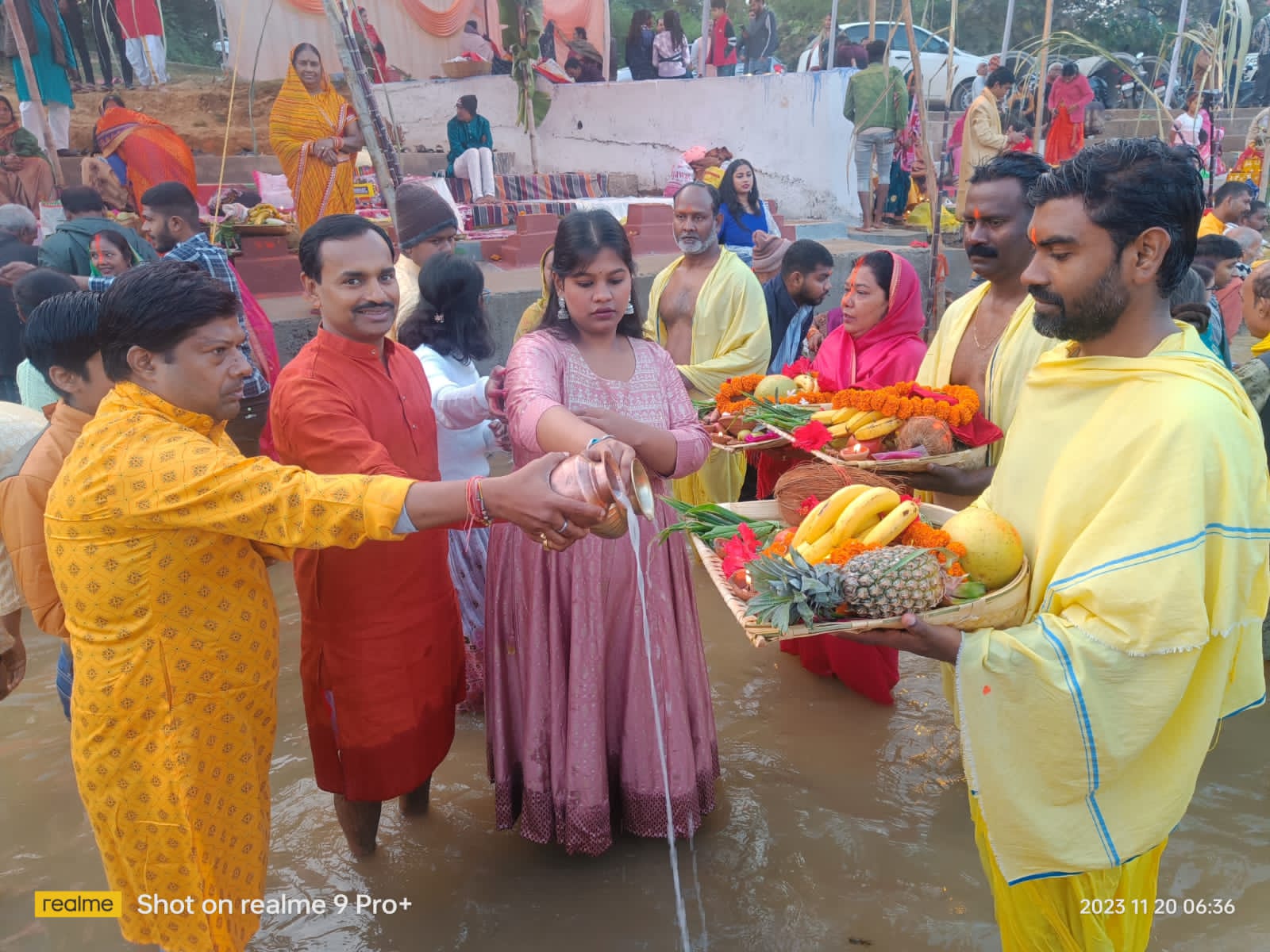 छठ घाट पहुँच कर नेता प्रतिपक्ष हितानंद ने दी छठ की बधाई