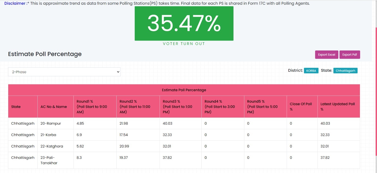 कोरबा जिले में 1 बजे तक 35.47 फीसदी हुआ मतदान