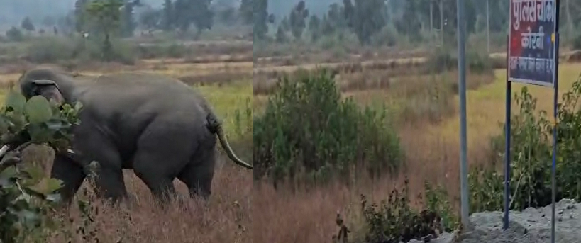 पुलिस चौकी पहुंचा हाथी,, ग्रामीणों के उड़े होश, वन विभाग को दी गई जानकारी, देखे वीडियो