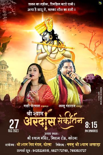 *श्री श्याम अरदास संकीर्तन का भव्य आयोजन श्री श्याम मंदिर में 27 अगस्त को*