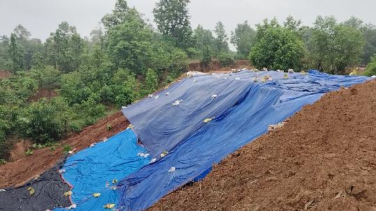 65 लाख की लागत से बना जालाशय डेढ़ माह बाद 48 घंटे की बारिश में बहा,पॉलिथीन लगाकर बंड को बचाने की कोशिश