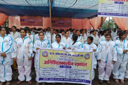 कोरबा, छत्तीसगढ़ - राष्ट्रीय स्वास्थ्य मिशन (NHM) के संविदा कर्मचारी अपनी मांगों…