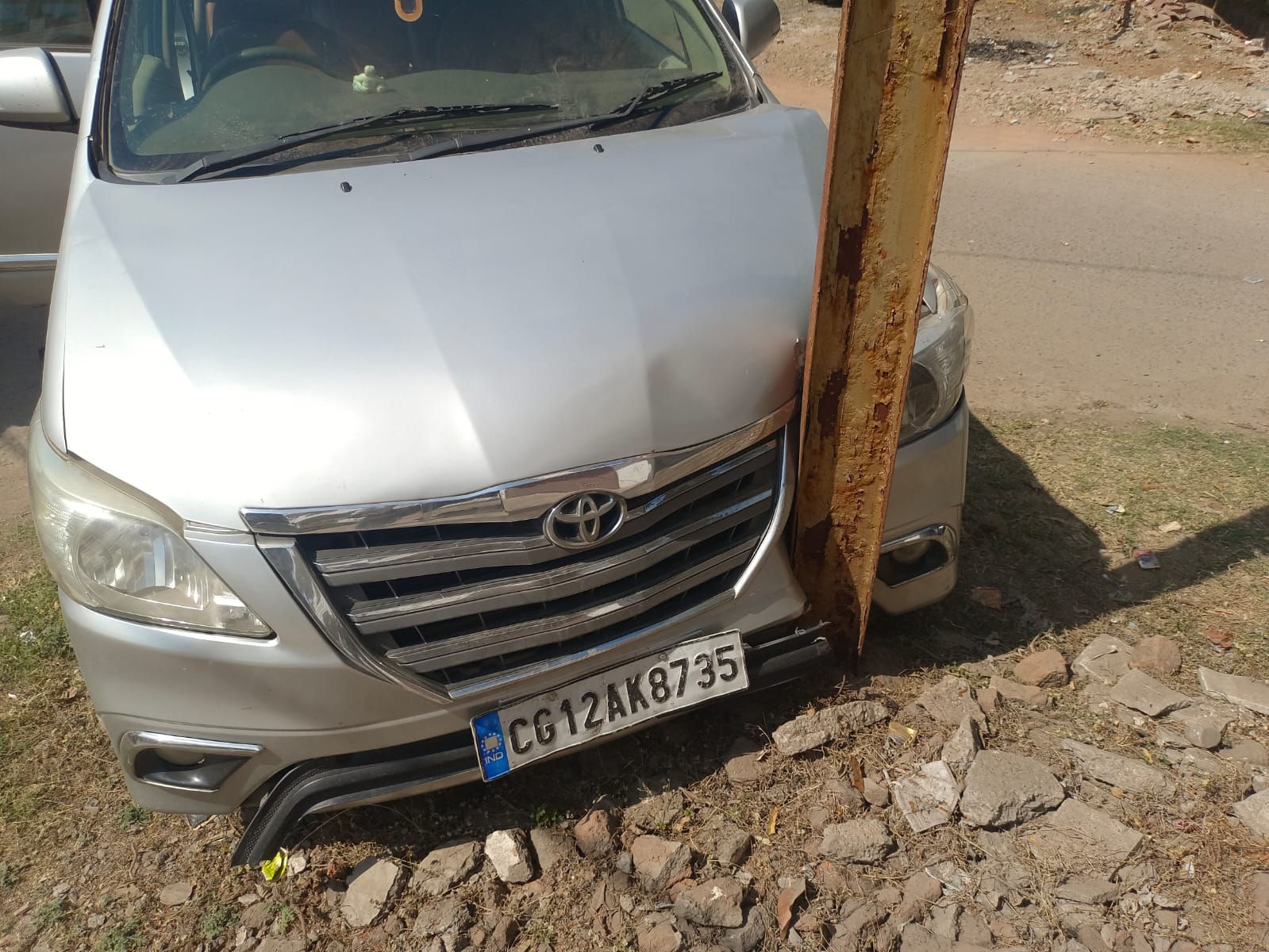 कोरबा ब्रेक:-अनियंत्रित तेज रफ्तार कार ने विद्युत पोल को मारी ठोकर