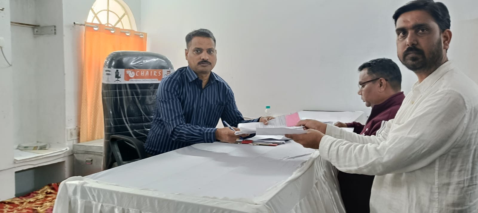 सरपंच पद के लिए सादगीपूर्ण माहौल में सरपंच प्रत्याशी रुखमणी कंवर, ज्योतिकिरण कंवर, एवं वाल सिंह(बबलू) ने भरा नामांकन फॉर्म