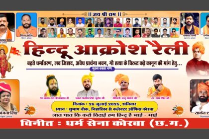 *कोरबा में धर्मांतरण, लव जिहाद और गौ तस्करी के खिलाफ कल हिंदू आक्रोश रैली*