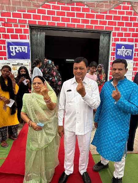 उद्योग मंत्री ने अपने परिवार के साथ किया मतदान, आम मतदाताओं से की शत प्रतिशत वोट देने की अपील