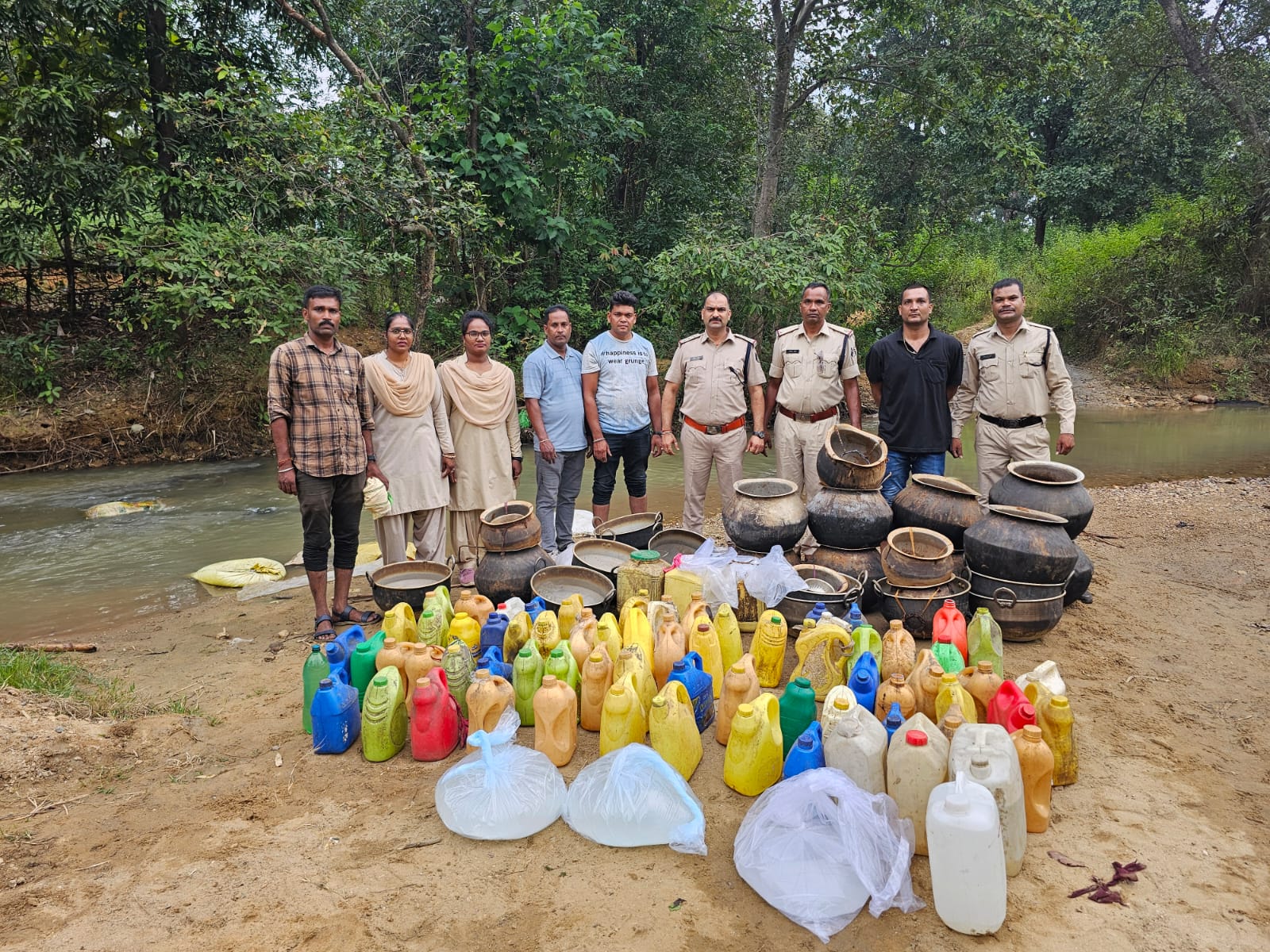 थाना उरगा पुलिस द्वारा ग्राम चीतापाली बरभौना नाला किनारे जंगल में अवैध कच्ची महुआ शराब कारोबार पर कार्यवाही