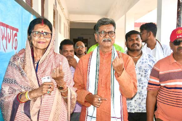 डॉ. महंत व सांसद ज्योत्सना ने गृहग्राम में किया मतदान, सरोज पाण्डेय नहीं डाल सकीं वोट…