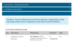 टेंडर की प्रक्रिया में एक और गड़बड़ी सामने आई। GeM पोर्टल पर EMD जमा करने का नियम है, लेकिन सुप्रीम इलेक्ट्रिकल ने EMD ऑफलाइन जमा किया। इसके बावजूद उसे तकनीकी रूप से पात्र घोषित कर बाकी कंपनियों को बाहर कर दिया गया। नियमों के मुताबिक, पहली बार निकली निविदा में कम से कम 3 कंपनियों का तकनीकी रूप से योग्य होना अनिवार्य था, लेकिन यहां केवल एक कंपनी को पास कर दिया गया।