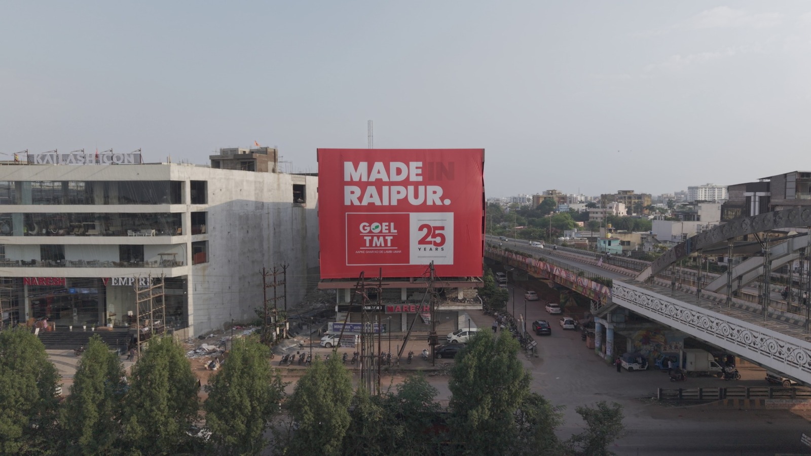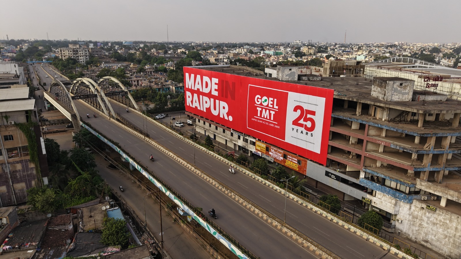 *रायपुर।* स्टील उद्योग की अग्रणी कंपनी श्री बजरंग पावर एंड इस्पात लिमिटेड *(गोयल TMT)* ने विज्ञापन के क्षेत्र में नया इतिहास रचते हुए रायपुर में भारत का सबसे बड़ा बिल्डिंग रैप स्थापित किया है। इस उपलब्धि के लिए *कंपनी को गोल्डन बुक ऑफ वर्ल्ड रिकॉर्ड्स की ओर से औपचारिक रूप से सम्मानित किया गया है*।