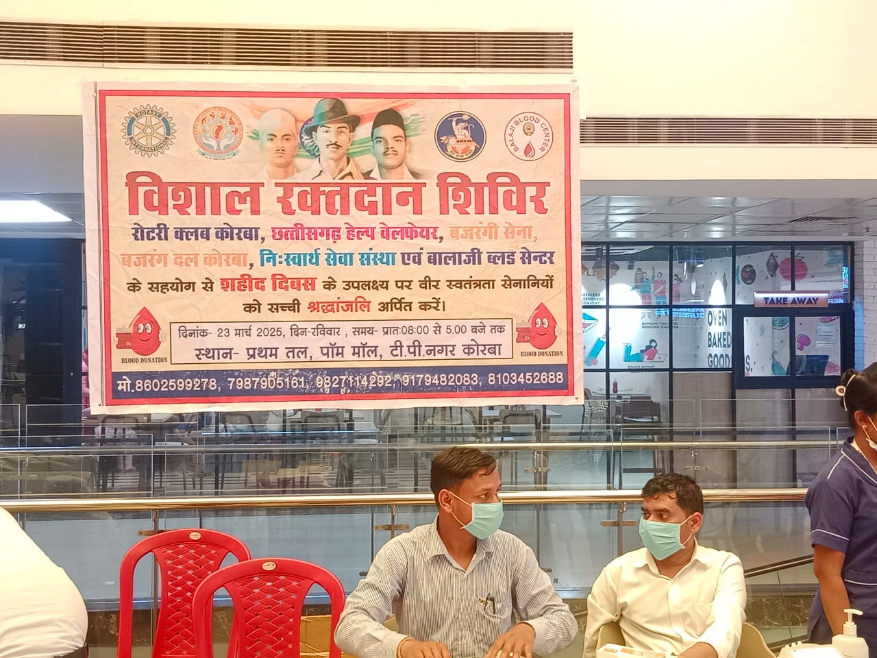 कोरबा। पाम मॉल में रविवार को सुबह 10 बजे से रक्त दान शिविर का आयोजन किया गया है जो शाम 6 बजे तक चलेगा। शिविर का आयोजन रोटरी क्लब, छत्तीसगढ़ हेल्थ वेलफेयर, बजरंग दल, बजरंगी सेना, नि:स्वार्थ सेवा संस्थान एवं बालाजी ब्लड बैंक के सहयोग से शहीद दिवस के उपलक्ष पर वीर स्वतंत्रता सेनानियों को सच्ची श्रद्धांजलि अर्पित करने के लिए किया गया। शिविर में 12 बजे तक 70 यूनिट रक्त इक्ट्ठा किया जा चुका है। आयोजन समिति ने बताया कि लोगों द्वारा रक्त दान करने से दिल की सेहत में सुधार, दिल की बीमारियों और स्ट्रोक के खतरे को कम माना जाता है। खून में आयरन की ज्यादा मात्रा दिल के दौरे के खतरे को बढ़ा सकती है। नियमित रूप से रक्तदान करने से आयरन की अतिरिक्त मात्रा नियंत्रित हो जाती है। जो दिल की सेहत के लिए अच्छी है। उन्होंने बताया कि कई बार मरीजों के शरीर में खून की मात्रा इतनी कम हो जाती है कि उन्हें किसी और व्यक्ति से ब्लड लेने की आवश्यकता पड़ जाती है। ऐसी ही इमरजेंसी स्थिति में खून की आपूर्ति के लिए लोगों को रक्तदान करने के लिए आगे आना चाहिए। इससे जरुरत मंद की मदद हो सकेगी।