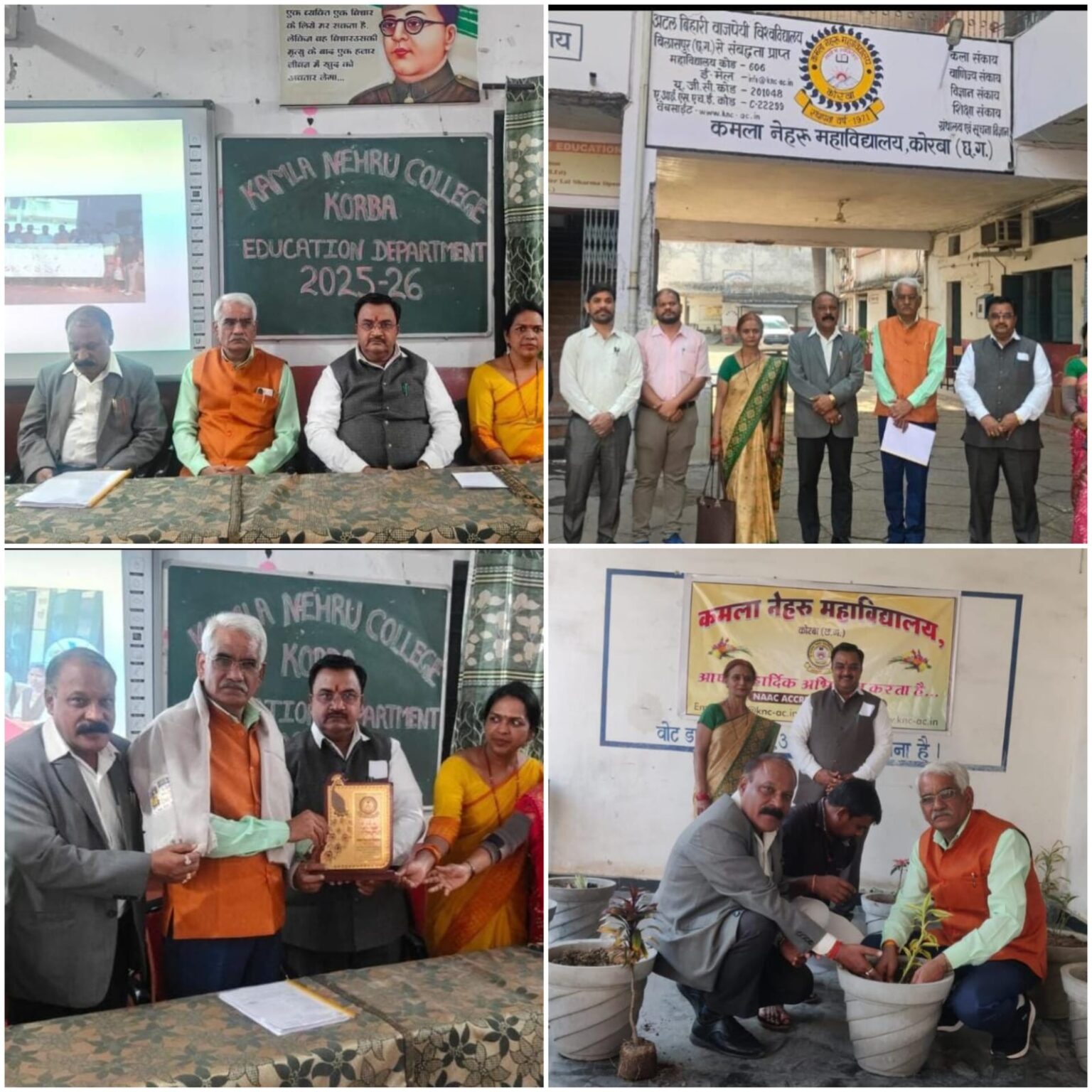 कार्यक्रम के अंत में कमला नेहरु महाविद्यालय के प्राचार्य डाॅ प्रशांत बोपापुरकर एवं शिक्षा संकाय की विभागाध्यक्ष डाॅ भारती कुलदीप ने शाॅल-श्रीफल एवं स्मृति चिन्ह भेंटकर डाॅ अतुल कुमार दुबे व डाॅ हरिशचंद्र द्विवेदी का सम्मान किया। इस अवसर पर श्री अग्रसेन कन्या महाविद्यालय कोरबा में सहायक प्राध्यापक डाॅ किरण वाजपेयी, डाॅ अंजू खेस्स, श्रीमती प्रीति द्विवेदी, नितेश यादव, शंकर यादव, राकेश गौतम एवं कुणाल दासगुप्ता उपस्थित रहे।