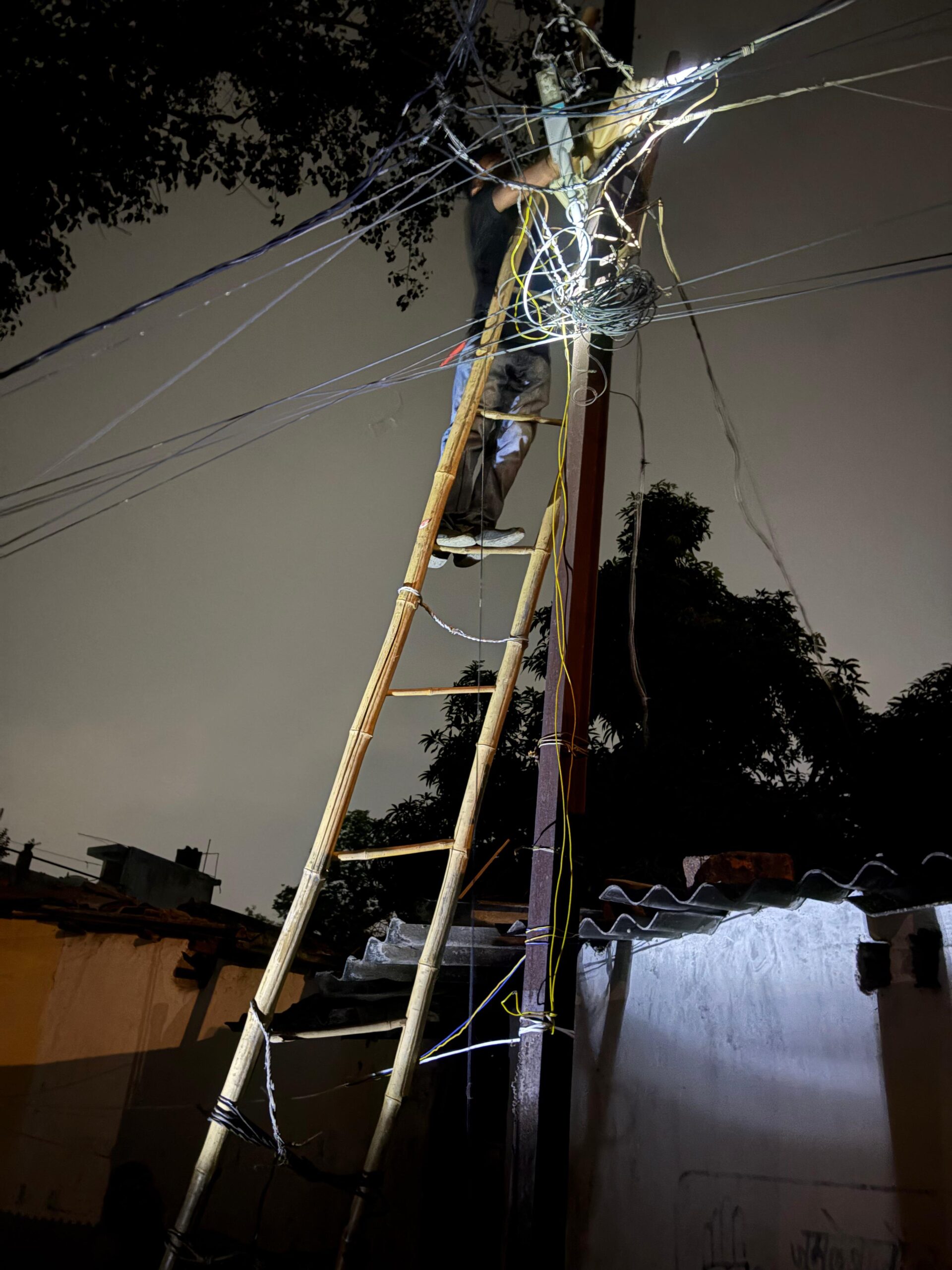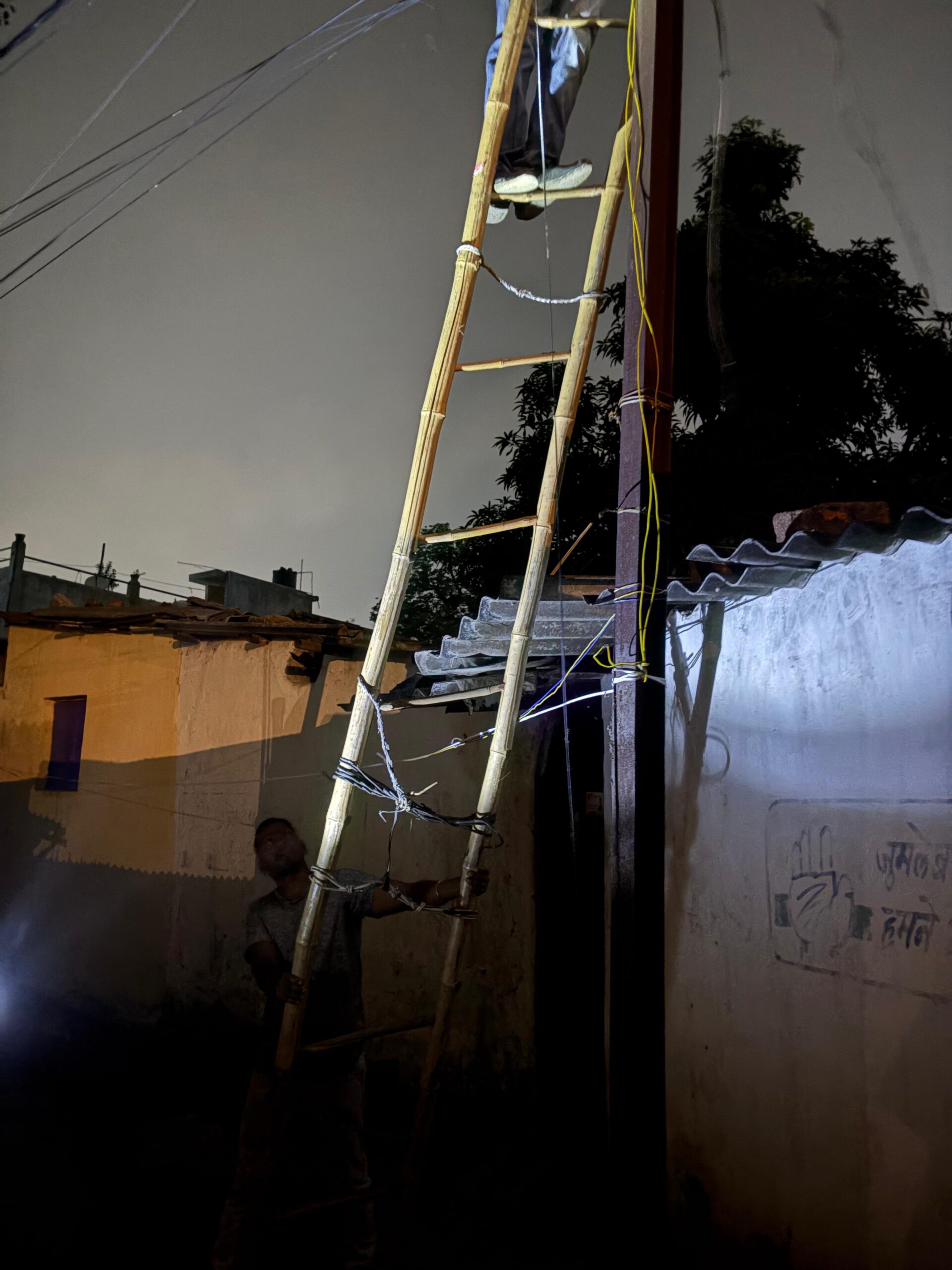 हाल ही में सामने आई तस्वीर ने व्यवस्था की जमीनी सच्चाई सामने रख दी है। इसमें एक लाइनमैन को पुरानी, जर्जर लकड़ी की सीढ़ी के सहारे खंभे पर चढ़कर काम करते देखा गया है। न तो उसे सेफ्टी बेल्ट दी गई है, न हेलमेट, न इंसुलेटेड दस्ताने — ऐसा प्रतीत होता है जैसे उसकी जान की कोई कीमत ही नहीं।