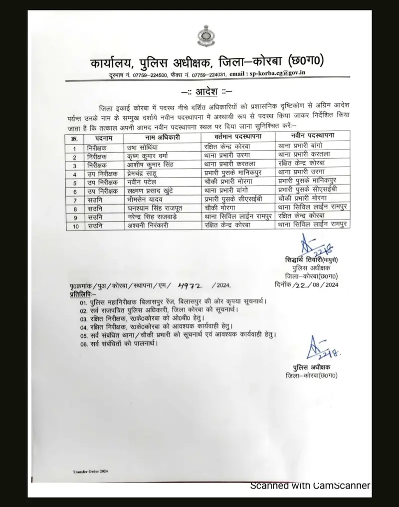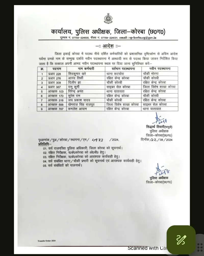 CHHATTISGARHCRIMEKORBAUncategorized KORBA:बदले गए थाना-चौकियों के प्रभारी,कई कर्मी प्रभावित.. Last updated: 2024/08/22 at 6:54 AM Thevoicesnews Published August 22, 2024 Share 0 Min Read कोरबा। जिला पुलिस अधीक्षक सिद्धार्थ तिवारी ने निरीक्षक से लेकर कई पुलिस अधिकारियों और कर्मियों का तबादला किया है। Thevoicesnews August 22, 2024 Share this Article Facebook Twitter Whatsapp Whatsapp Telegram Email Copy Link Print Thevoicesnews THE VOICES LETEST ARTICALS BIG BREAKINGCHHATTISGARHCRIMEHEALTHKORBAPOLITICSUncategorized *कोरबा: पतंग निकालने के चक्कर में ट्रांसफार्मर की चपेट में आया 8 वर्षीय मासूम, हालत गंभीर* Thevoicesnews February 5, 2026 CHHATTISGARHHEALTHKORBAPOLITICSUncategorizedVIDEO *अदाणी फाउंडेशन की ‘कम्युनिटी फर्स्ट’ पहल से कोरबा क्षेत्र में शिक्षा, स्वास्थ्य और सुरक्षा को मिली नई मजबूती* Thevoicesnews February 5, 2026 BIG BREAKINGCHHATTISGARHCRIMEHEALTHKORBAPOLITICSUncategorized *कोरबा: मानिकपुर खदान की 170 फीट गहराई में गिरने से ग्रामीण की मौत, सुरक्षा व्यवस्था पर उठे सवाल* Thevoicesnews February 5, 2026 CHHATTISGARHCRIMEKORBAUncategorized *ब्रेकिंग न्यूज़: SP सिद्धार्थ तिवारी ने जारी किए तबादला आदेश; कई थाना प्रभारियों के बदले क्षेत्र* Thevoicesnews February 5, 2026 CHHATTISGARHHEALTHKORBAPOLITICSUncategorized *रजत जयंती समारोह में 25 हितग्राहियों को प्रमाण पत्र, बिजली उपभोक्ताओं को योजनाओं की दी गई जानकारी* Thevoicesnews February 4, 2026 BIG BREAKINGCHHATTISGARHCRIMEHEALTHKORBAUncategorizedVIDEO *कोरबा: प्रेमी ने प्रेमिका के गले पर चाकू से किया वार, खुद भी घायल; युवक ने तोड़ा दम, युवती बिलासपुर रेफर* Thevoicesnews February 4, 2026 BIG BREAKINGCHHATTISGARHHEALTHKORBAPOLITICSUncategorized *बालको ने 37वें राष्ट्रीय सड़क सुरक्षा माह पर चलाया जागरूकता अभियान* Thevoicesnews February 4, 2026 BIG BREAKINGCHHATTISGARHHEALTHKORBAPOLITICSUncategorized *बालको ने डिजिटल समाधान से स्मार्ट मैन्युफैक्चरिंग को दी नई दिशा* Thevoicesnews February 4, 2026 BIG BREAKINGCHHATTISGARHCRIMEKORBAUncategorizedVIDEO *पुलिस महानिरीक्षक बिलासपुर के द्वारा “सशक्त मोबाइल ऐप” को कोरबा ज़िले में भी किया गया लागू* Thevoicesnews February 3, 2026 BIG BREAKINGCHHATTISGARHHEALTHKORBAPOLITICSUncategorized *ऊर्जानगरी को मिली नई सौगात: मुख्यमंत्री विष्णुदेव साय ने किया भाजपा के भव्य ‘अटल स्मृति भवन’ का शिलान्यास* Thevoicesnews February 2, 2026 THE VOICES VIDEO NEWS CHHATTISGARHHEALTHKORBAPOLITICSUncategorizedVIDEO *अदाणी फाउंडेशन की ‘कम्युनिटी फर्स्ट’ पहल से कोरबा क्षेत्र में शिक्षा, स्वास्थ्य और सुरक्षा को मिली नई मजबूती* Thevoicesnews February 5, 2026 BIG BREAKINGCHHATTISGARHCRIMEHEALTHKORBAUncategorizedVIDEO *कोरबा: प्रेमी ने प्रेमिका के गले पर चाकू से किया वार, खुद भी घायल; युवक ने तोड़ा दम, युवती बिलासपुर रेफर* Thevoicesnews February 4, 2026 BIG BREAKINGCHHATTISGARHCRIMEKORBAUncategorizedVIDEO *पुलिस महानिरीक्षक बिलासपुर के द्वारा “सशक्त मोबाइल ऐप” को कोरबा ज़िले में भी किया गया लागू* Thevoicesnews February 3, 2026 BIG BREAKINGCHHATTISGARHCRIMEHEALTHKORBAPOLITICSUncategorizedVIDEO *मुख्यमंत्री विष्णुदेव साय ने वर्चुअल उद्घाटन किया छत्तीसगढ़ के 8 नए साइबर थानों का* Thevoicesnews January 28, 2026 BIG BREAKINGCHHATTISGARHCRIMEKORBAPOLITICSUncategorizedVIDEO *होमगार्ड की नई जिला सेनानी योगिता साहू ने संभाला कोरबा में चार्ज* Thevoicesnews January 28, 2026