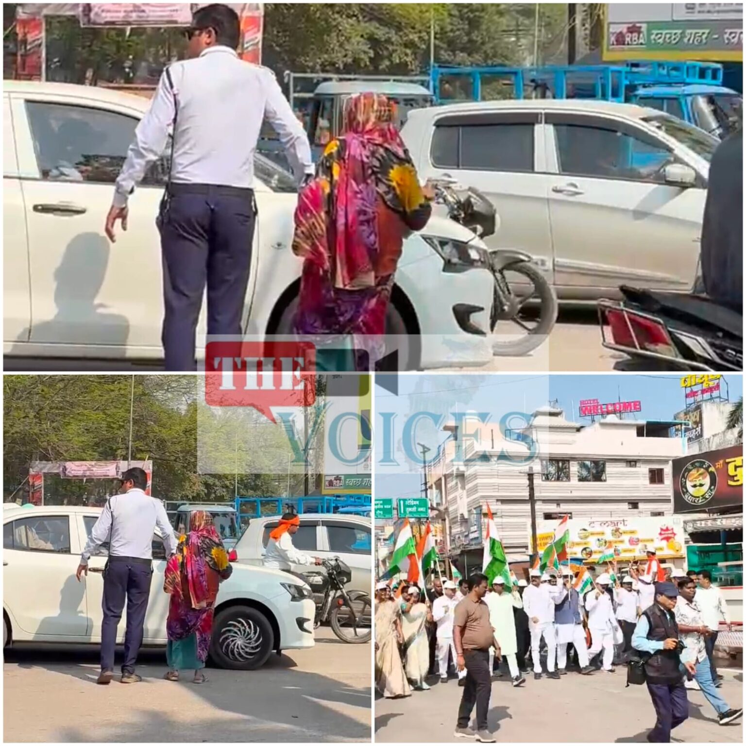 मामला CSEB चौक का है, जो रैली मार्ग पर स्थित है। व्यस्त ट्रैफिक और मार्च की गहमागहमी के बीच एक वृद्ध महिला सड़क पार करने में असमर्थ दिख रही थीं।