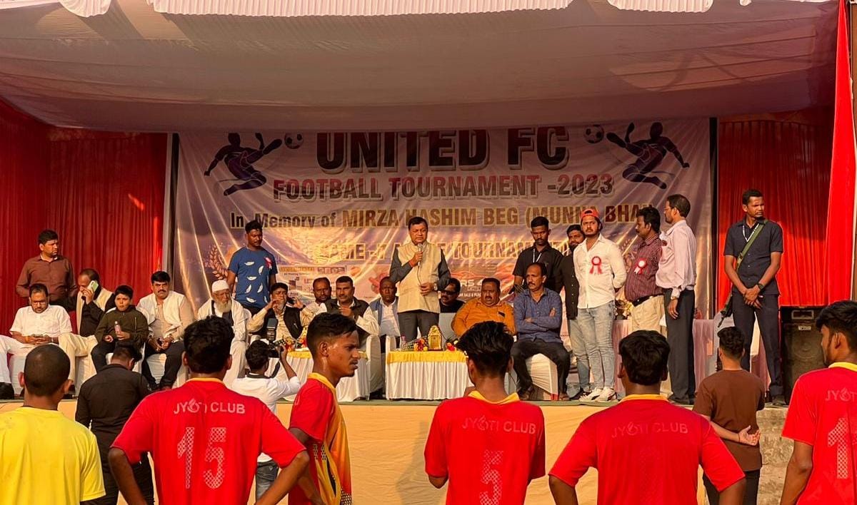 सुभाष ब्लॉक में हो रहे मिर्जा हाशिम बेग के स्मृति में 7 ए साइड फुटबॉल टूर्नामेंट का शुभ आरंभ कैबिनेट मंत्री लखन देवांगन के द्वारा किया गया