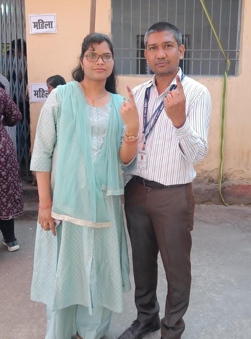 एनआईसी अधिकारी हेमंत जायसवाल और 9 माह की गर्भवती पत्नी ज्योति जायसवाल ने लोकतंत्र के इस महापर्व में मतदान कर अपनी भागीदारी सुनिश्चित की। उन्होंने पति के साथ प्राथमिक शाला…