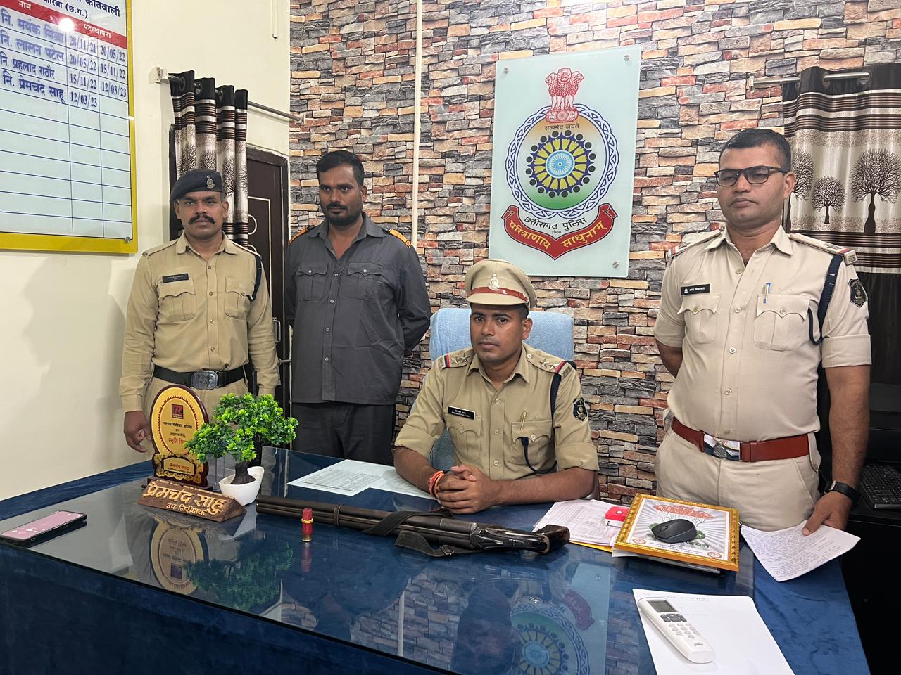 लाइसेंसी हथियार से जबरन हवाई फायर करने वाले सिक्युरटी गार्ड के विरुद्ध की गयी कार्यवाही , 12 घंटे के भीतर आरोपी से दो नाली हथियार एवं राउंड का खाली खोखा जप्त कर आरोपी को किया गया गिरफ्तार