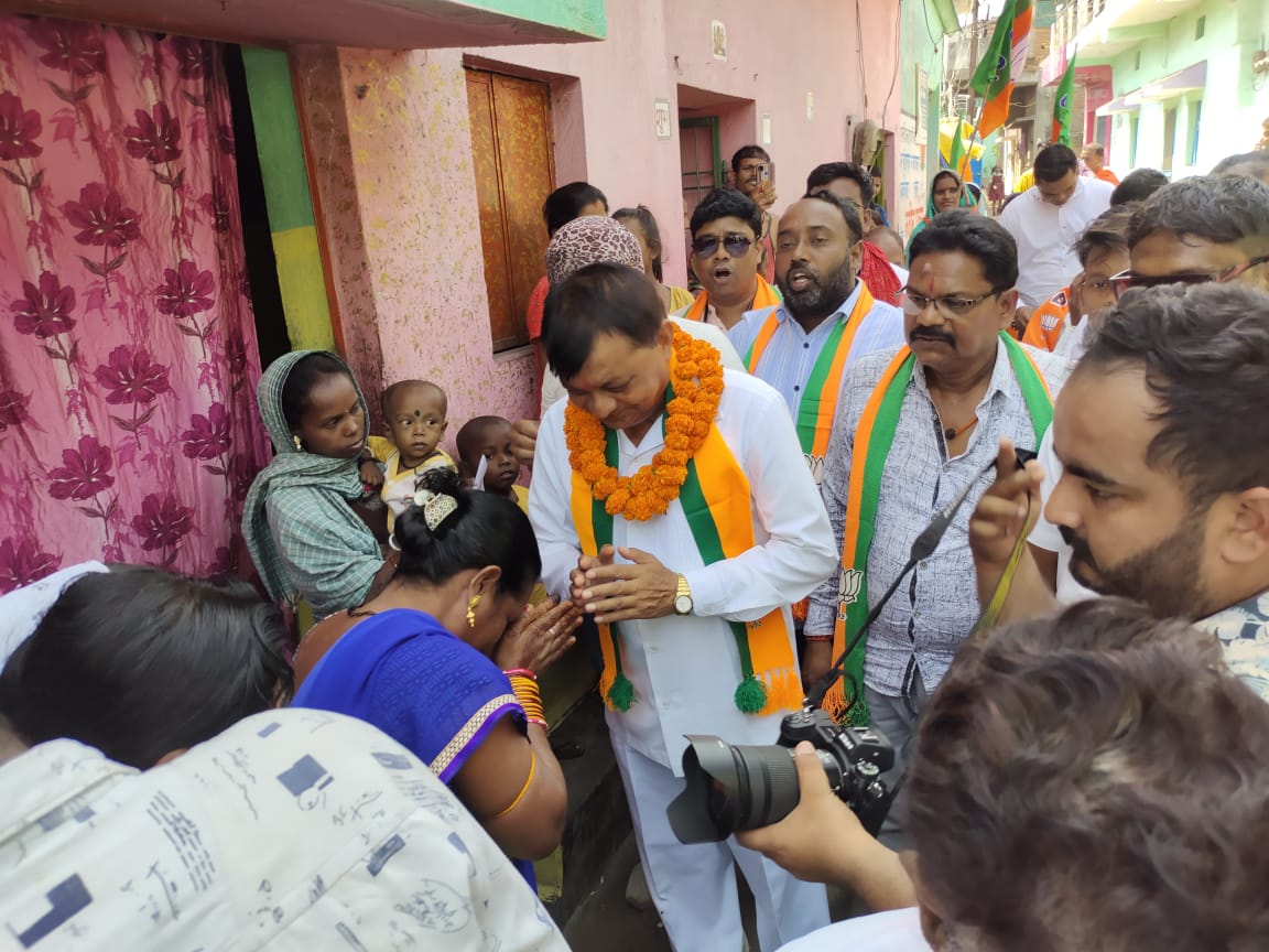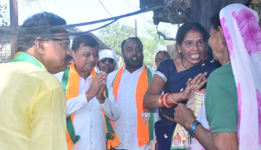 भाजपा प्रत्यासी ने समर्थकों के साथ इमलीडुग्गू बस्ती और धनुवार पारा में लिया जनता से आशीर्वाद