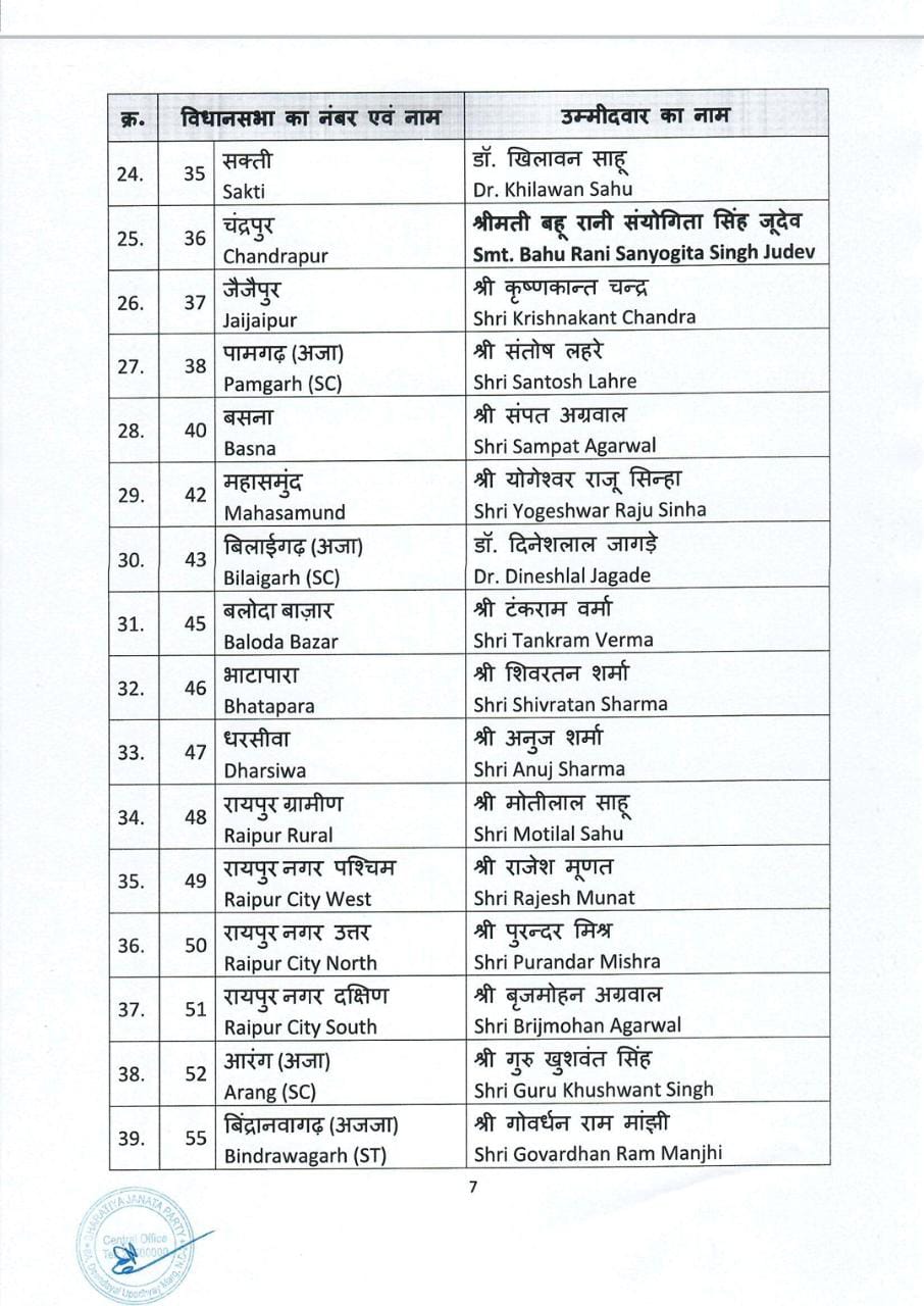 CG BREAKING: भाजपा प्रत्याशियों की दूसरी लिस्ट जारी, 3 सांसद समेत सभी सीटिंग MLA को मिली टिकट, देखें पूरी लिस्ट…