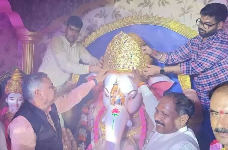 गणेश जी को पहनाया गया सोने का मुकुट, कीमत 35 लाख रूपए