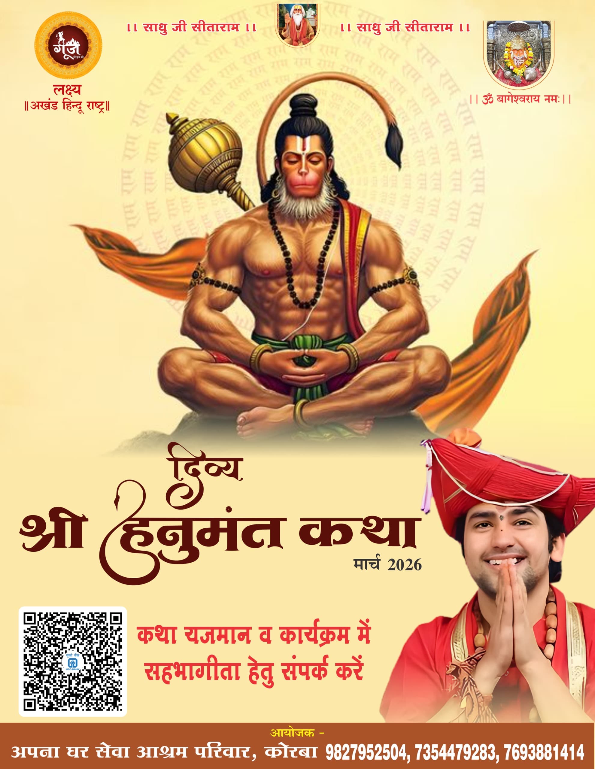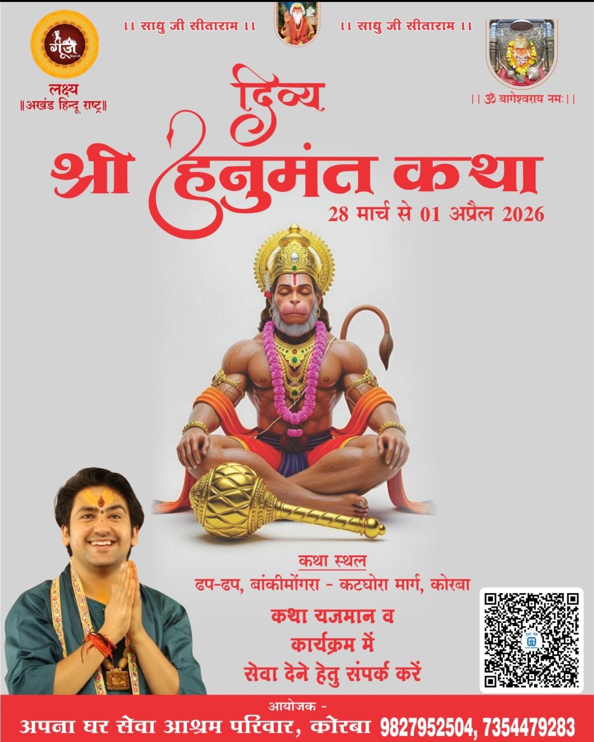 *कोरबा में गूंजेगा भक्ति का स्वर : 28 मार्च से दिव्य हनुमंत कथा, कल 21 हजार माताओं की कलश यात्रा से होगा शुभारंभ*