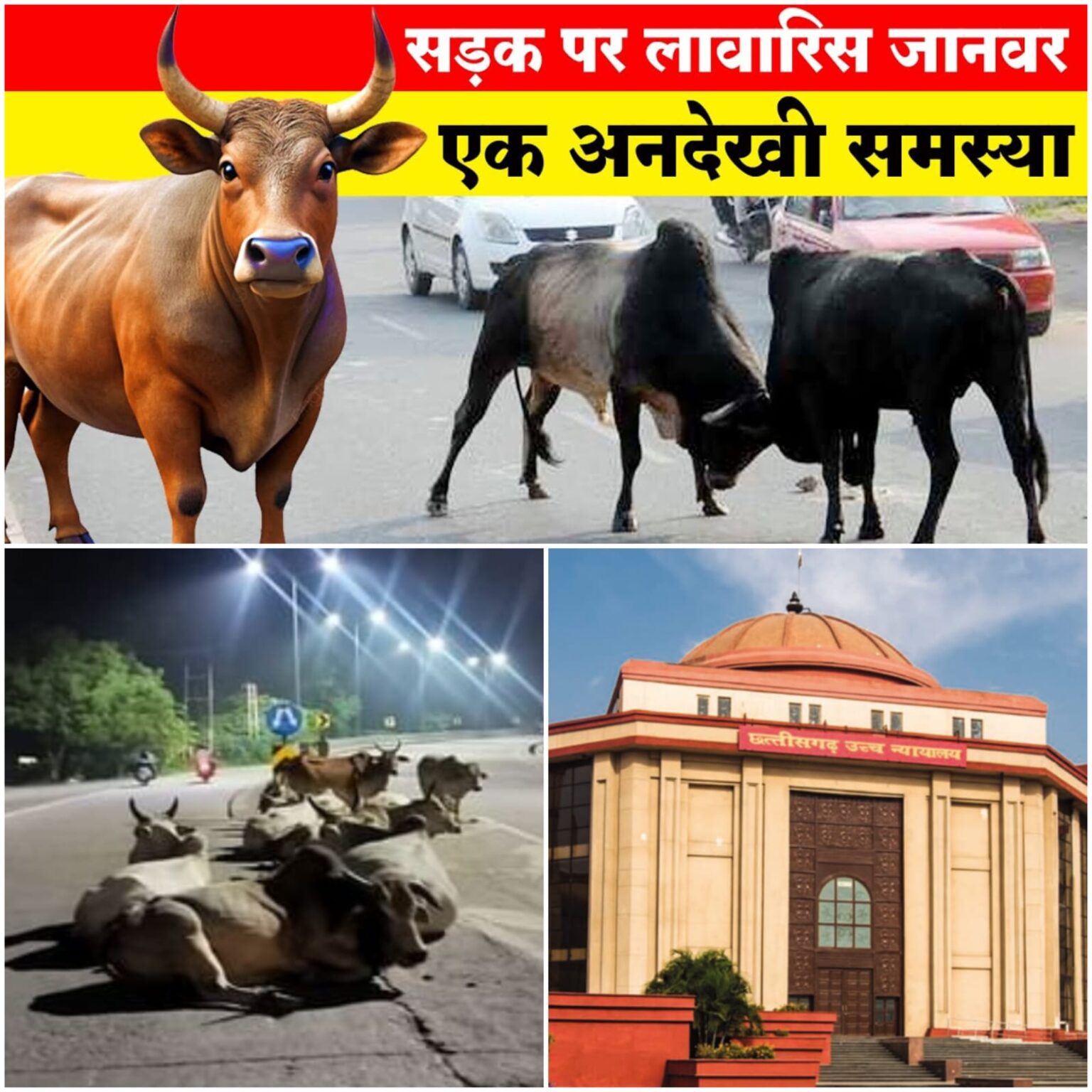छत्तीसगढ़ के बिलासपुर जिले में नेशनल हाईवे और अन्य सड़कों पर मवेशियों के जमावड़े और बढ़ते सड़क हादसों को लेकर हाईकोर्ट में सुनवाई हुई। जनहित याचिका के साथ एक हस्तक्षेप याचिका भी दायर की गई, जिसमें बिलासपुर से जांजगीर तक एनएचएआई की सड़कों पर मवेशियों की तस्वीरें और उनकी सुरक्षा में विफलता को उजागर किया गया। याचिका में यह तर्क दिया गया कि अगर एनएचएआई नागरिकों की सुरक्षा सुनिश्चित नहीं कर पा रहा है, तो टोल वसूलना अनुचित है।